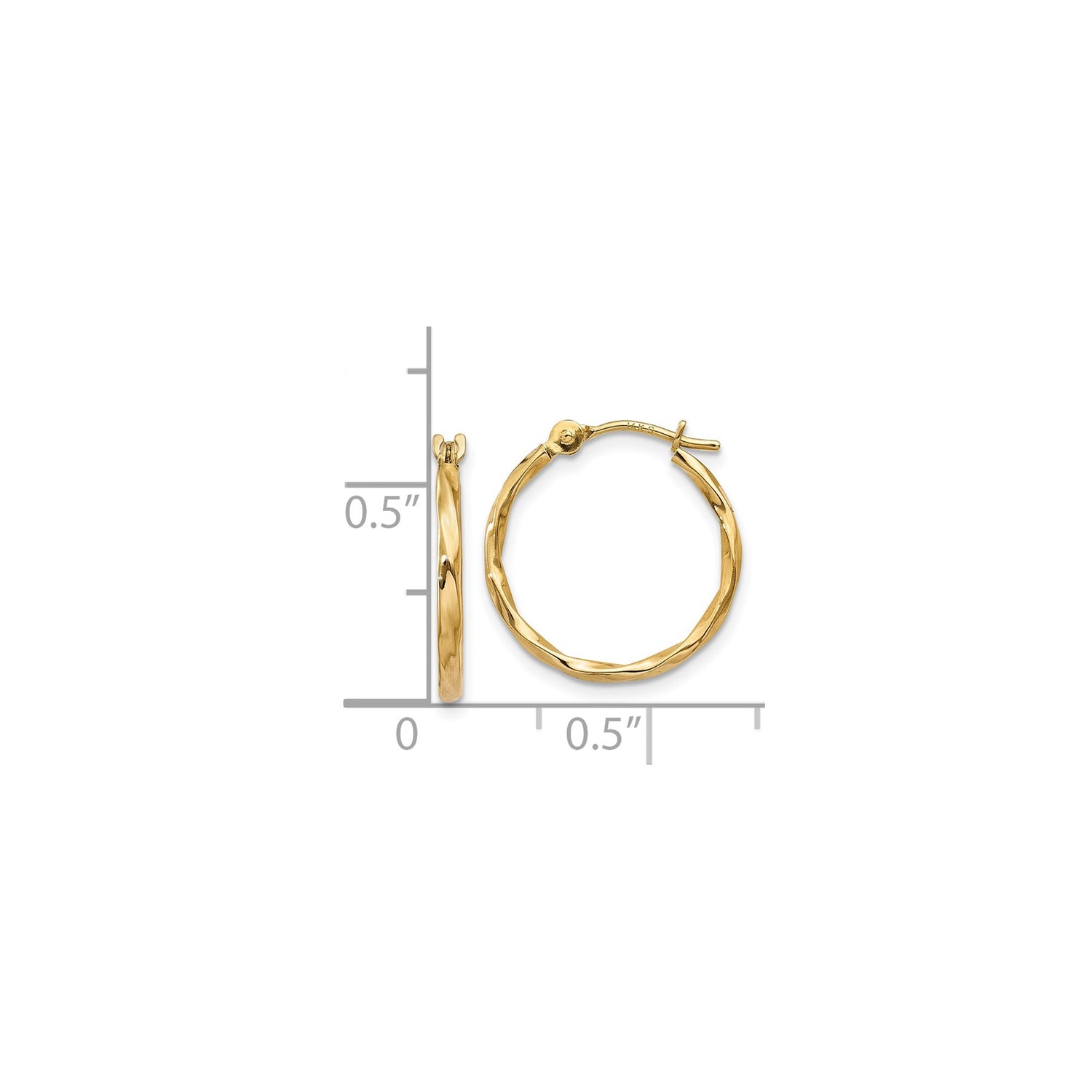 14k Yellow Gold Twisted Hoop Earrings with Polished Finish and Faceted Texture for Women