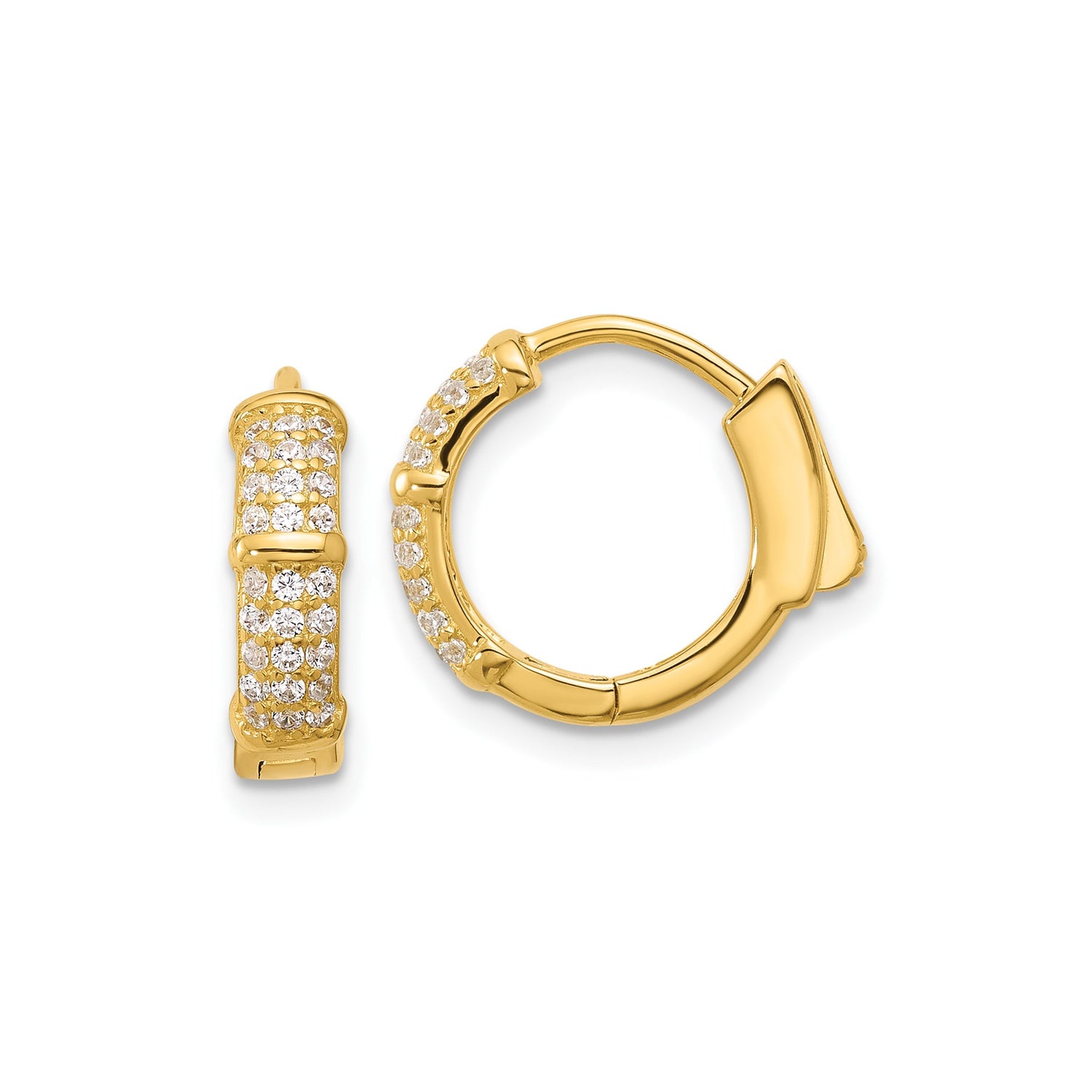 From elegant hoop earrings women love to wear with chic ensembles to everyday luxury hoop earrings that complete your go-to attire, these earrings are all about options. Their feminine gold hoop earrings silhouette is complemented by the subtle gleam of CZ pave accents, creating fashion sparkle CZ hoops suitable for year-round style. Perfect as fine jewelry gold hoops that exude charm without religious symbols, these no symbol fashion earrings are an elegant way to express individuality.