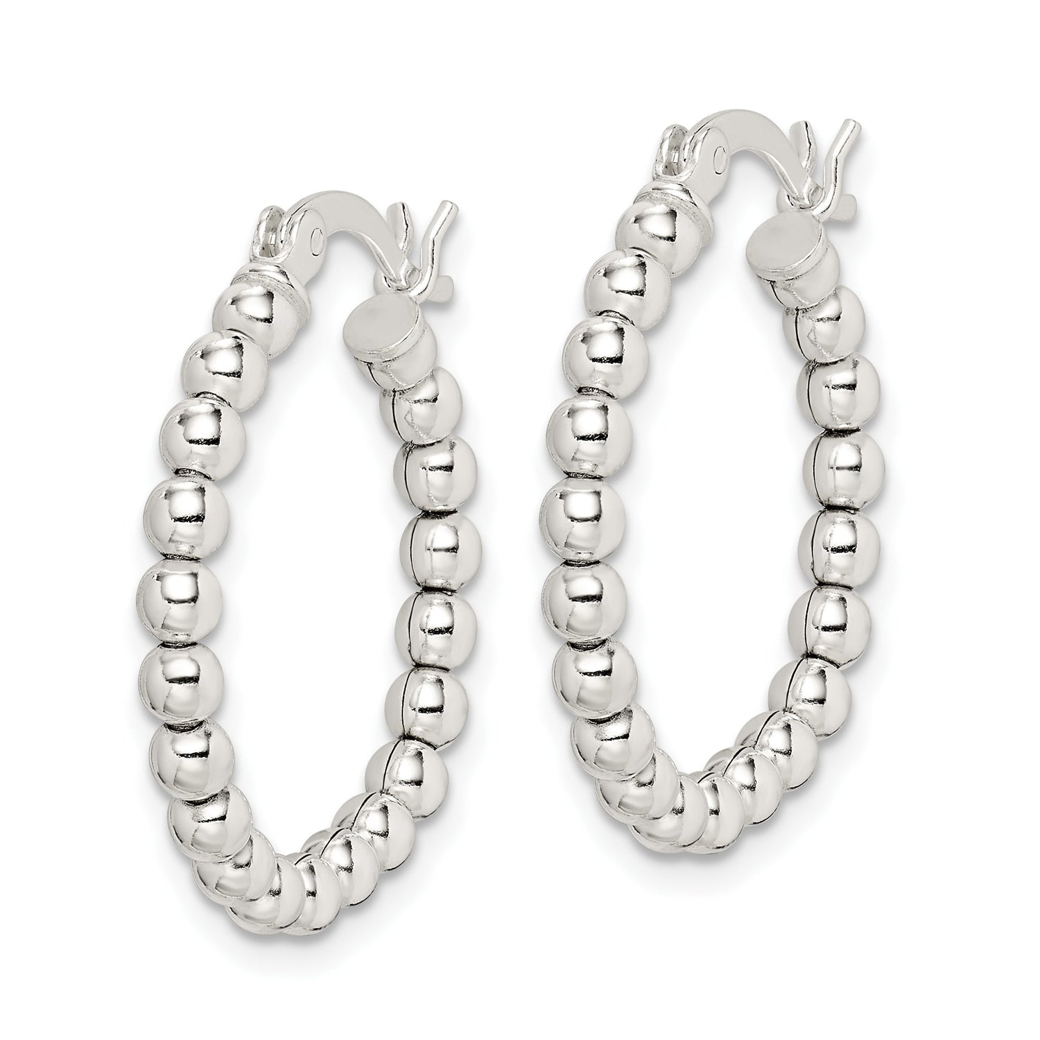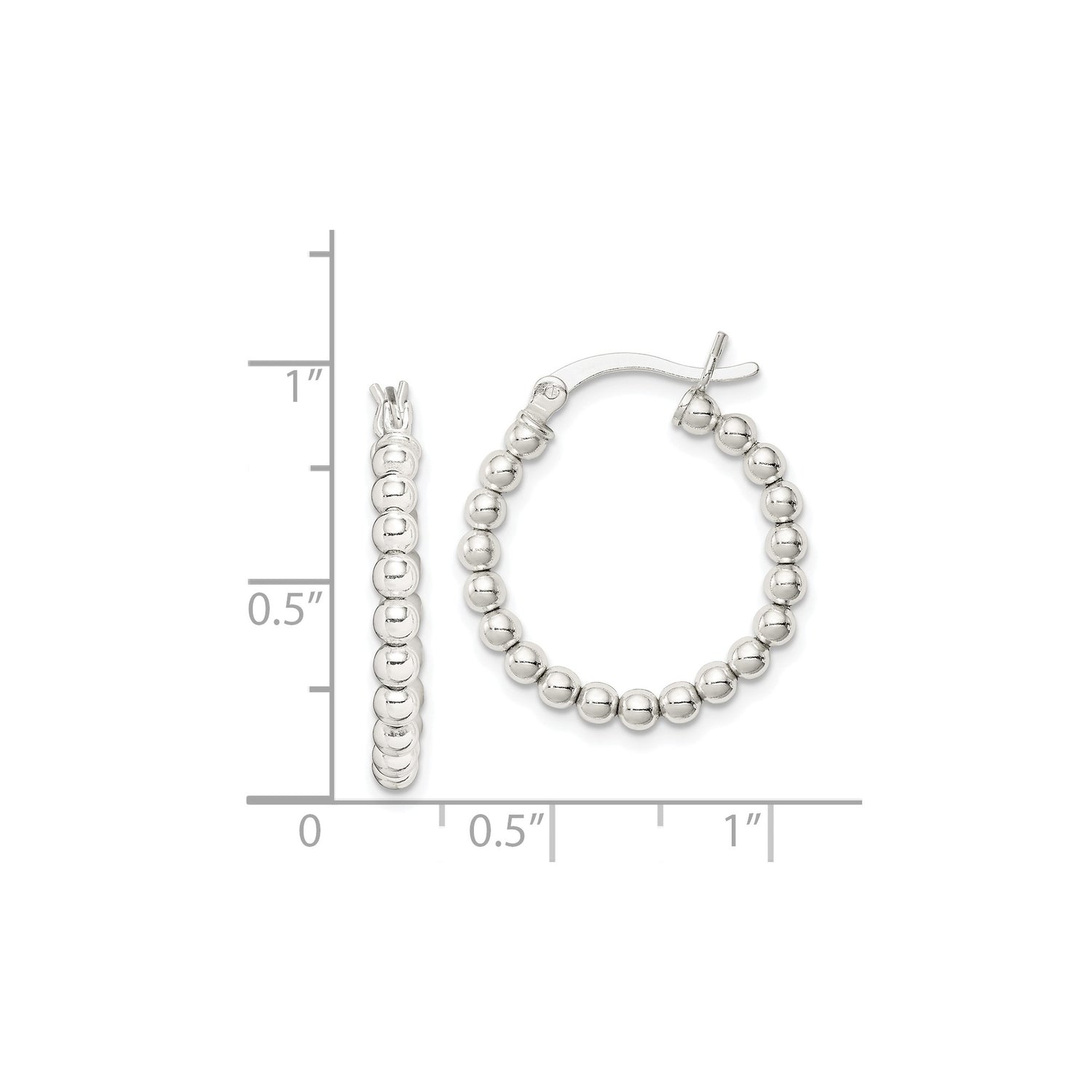 Sterling Silver Beaded Hoop Earrings, Lightweight Round Polished Hoops for Women
