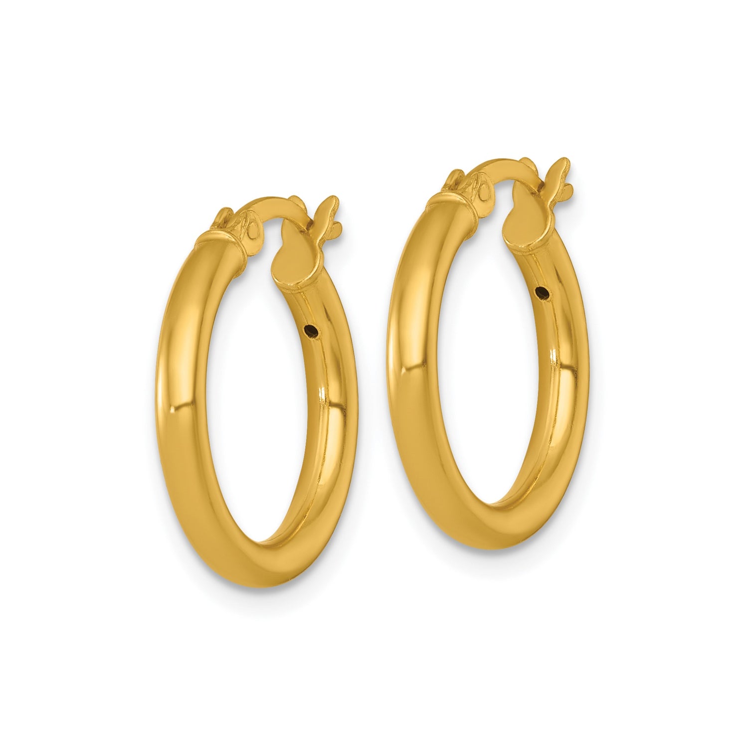 Sterling Silver Gold Plated Hoop Earrings, Classic Round Tube Design, Hinged Snap Closure