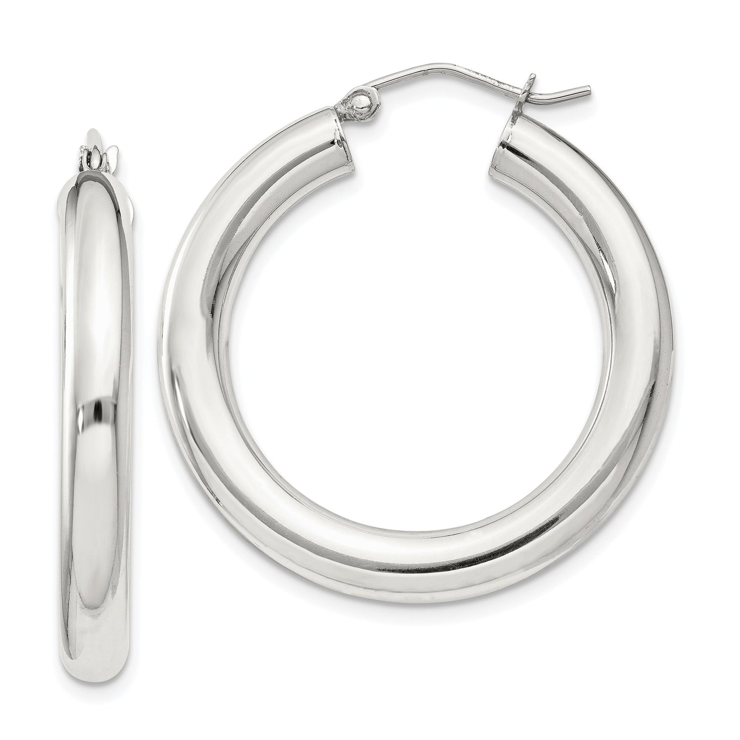 Sterling Silver Hoop Earrings, Classic Round Polished Design, Lightweight Minimalist Style