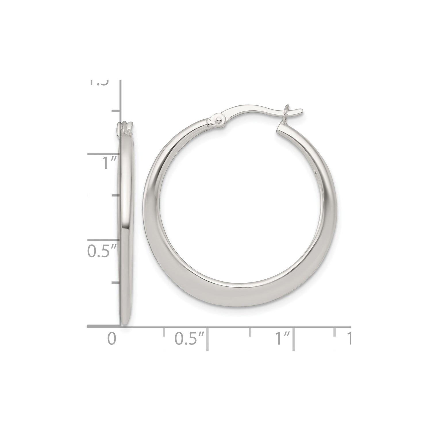 Sterling Silver Hoop Earrings, Classic Round Polished Design, Smooth Shiny Finish, Lightweight Style