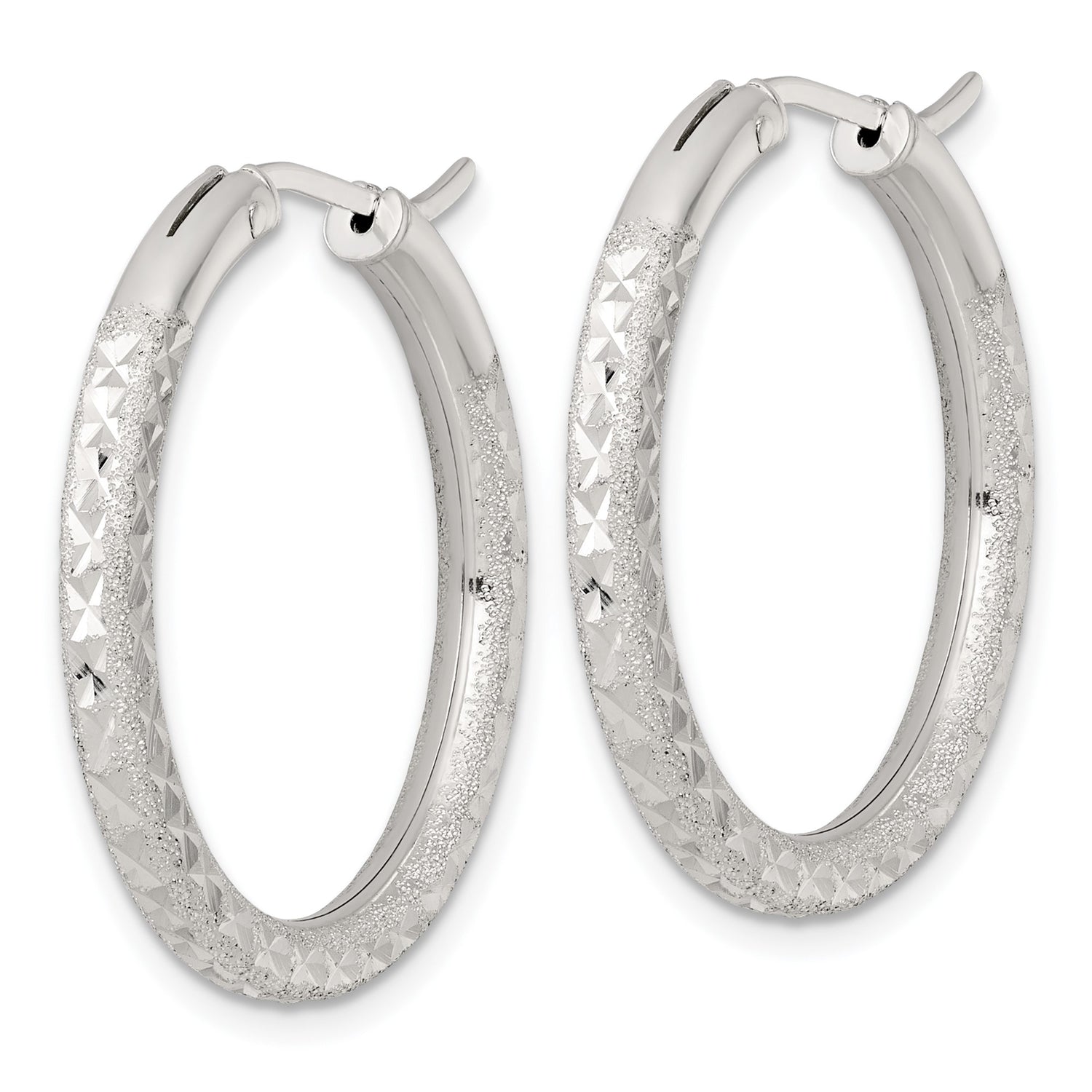 Crafted As Sterling Silver Hoops, They Combine The Brightness Of Shiny Silver Hoops With The Refined Texture Of Diamond-Cut Silver Hoops. Their Laser Etched Detailing Creates A Subtle Sparkle, Accentuating Their Appeal As Both Fashion Hoops And Statement Hoops. These Medium Textured Silver Hoops Maintain A Lightweight Feel, Making Them Comfortable For All-Day Wear. The Sturdy Latch Closure Ensures A Secure Fit While Blending Seamlessly Into The Metal Hoop Earrings Design You Can Count On.
