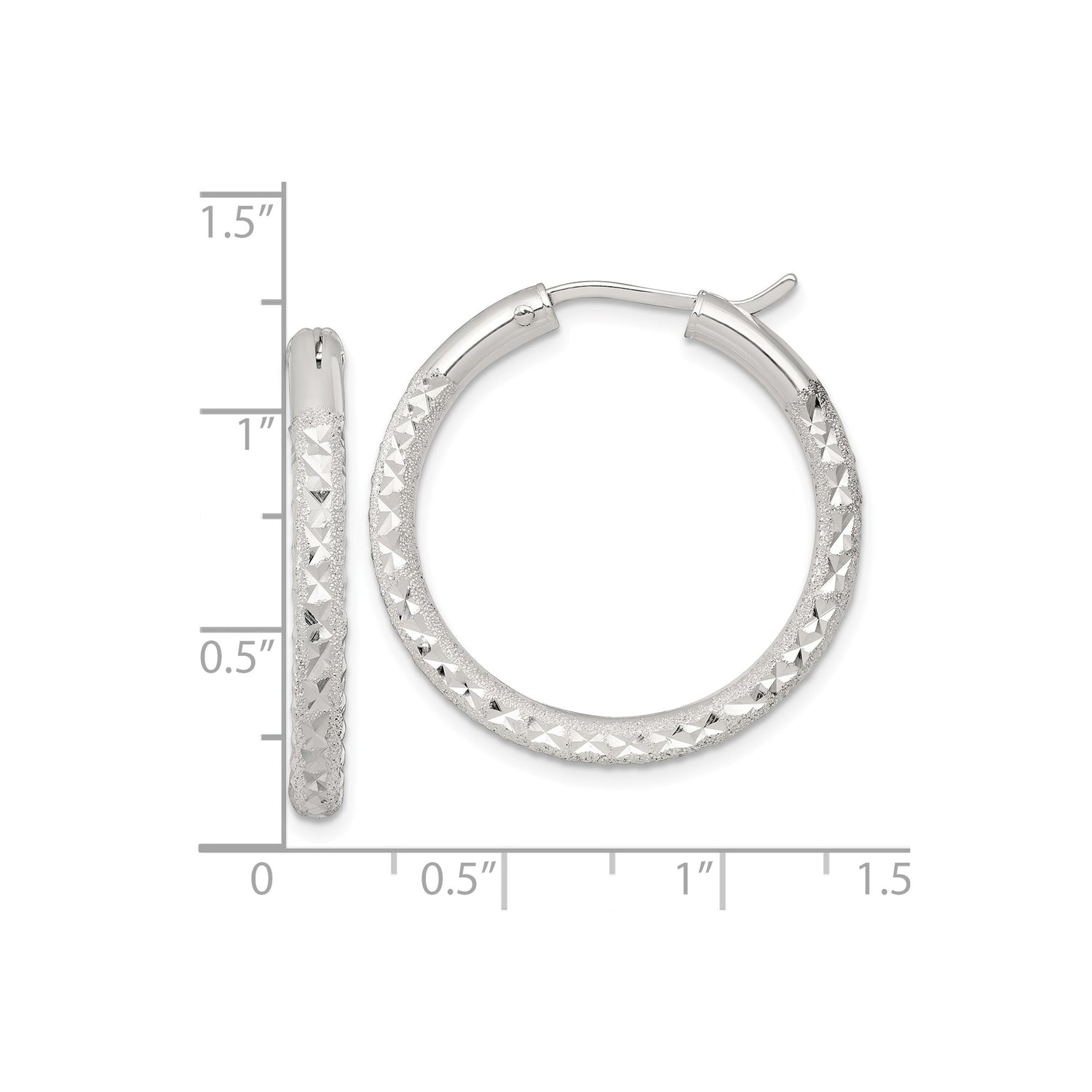 Sterling Silver Hoop Earrings, Diamond Cut Medium Textured Round Hoops for Women