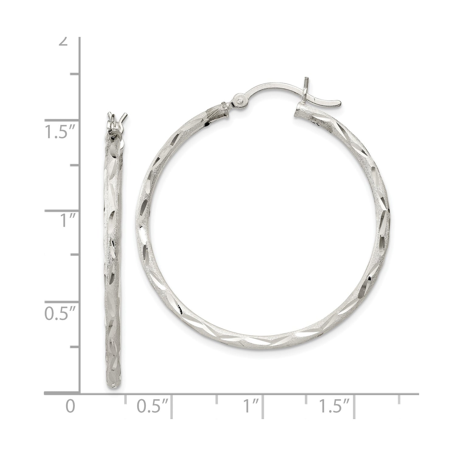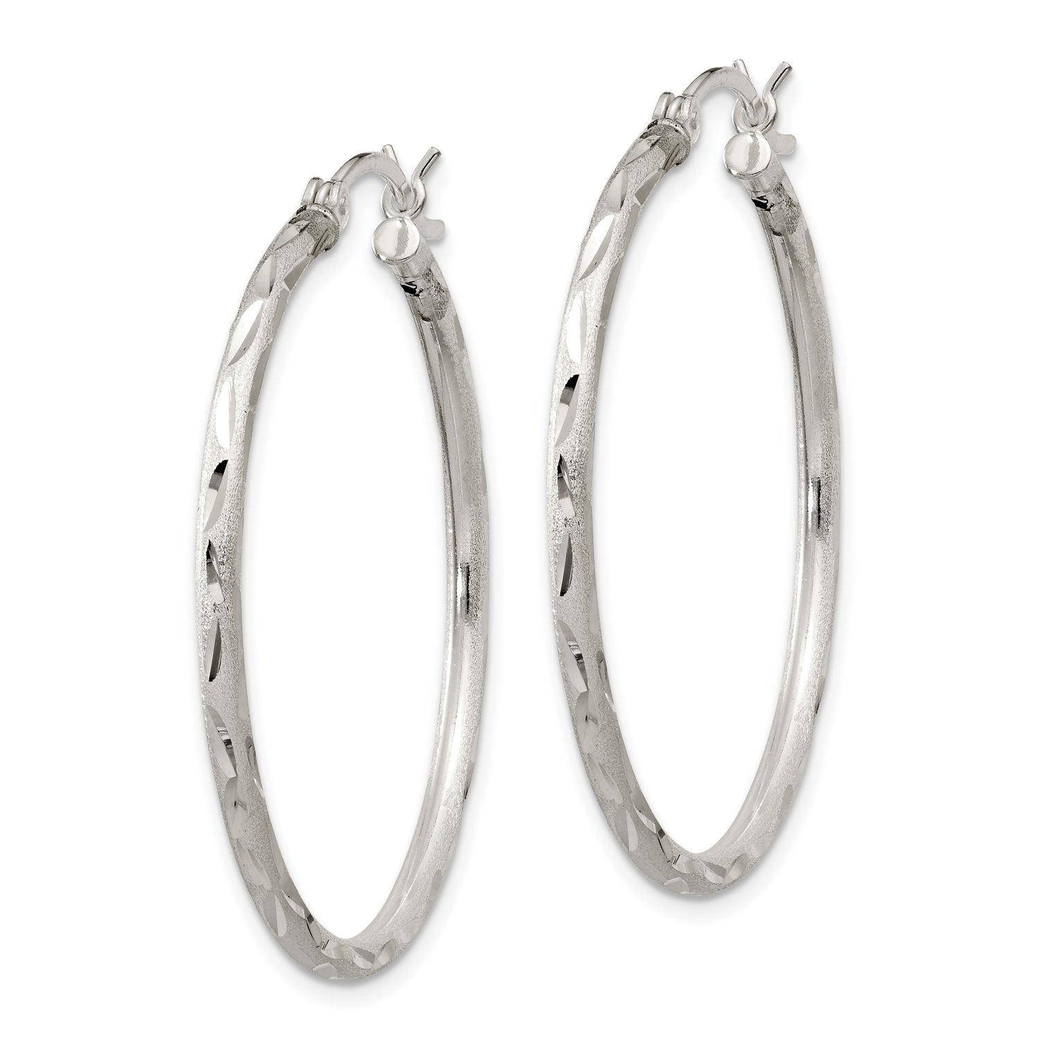 Sterling Silver Hoop Earrings, Diamond Cut Textured Design, Lightweight Polished Style