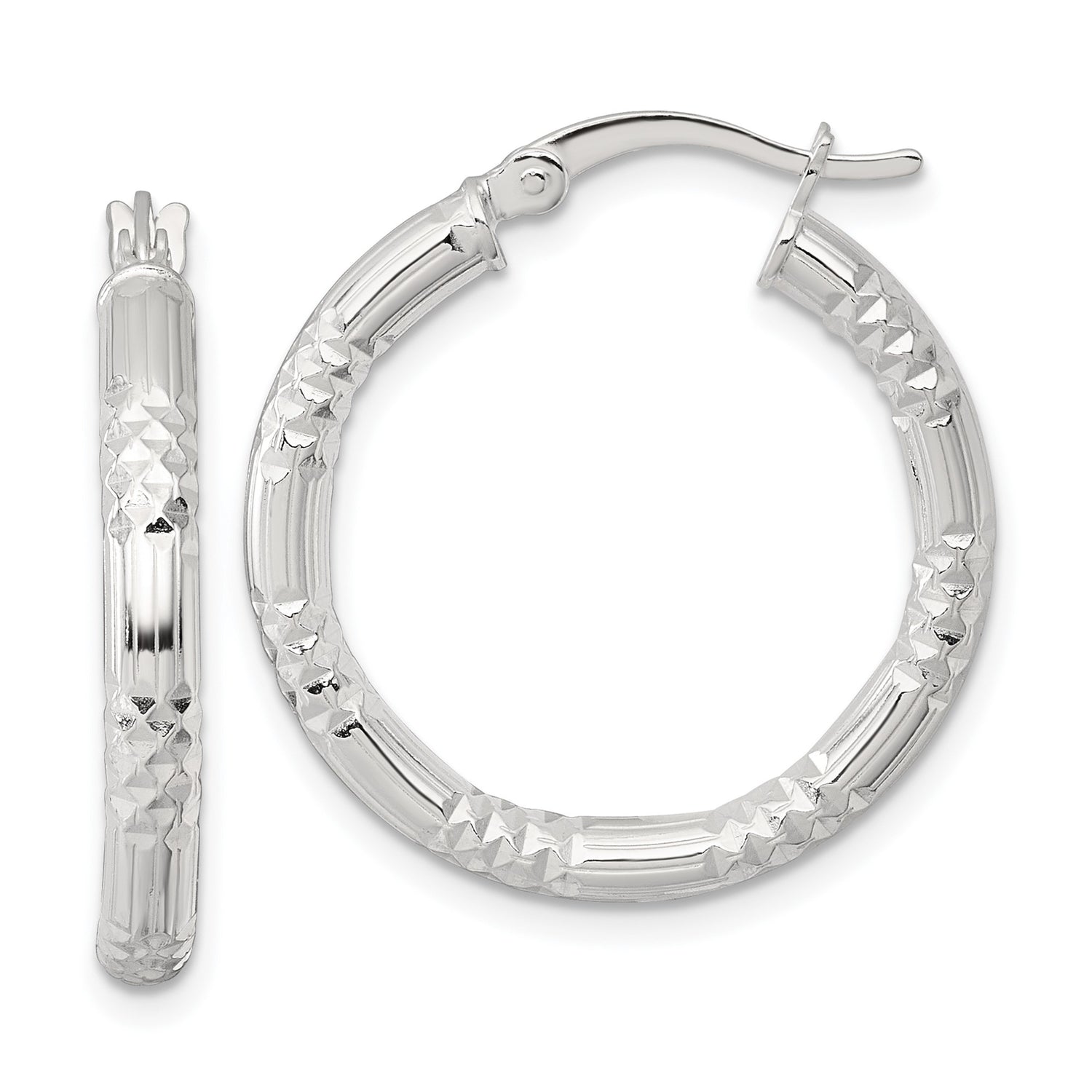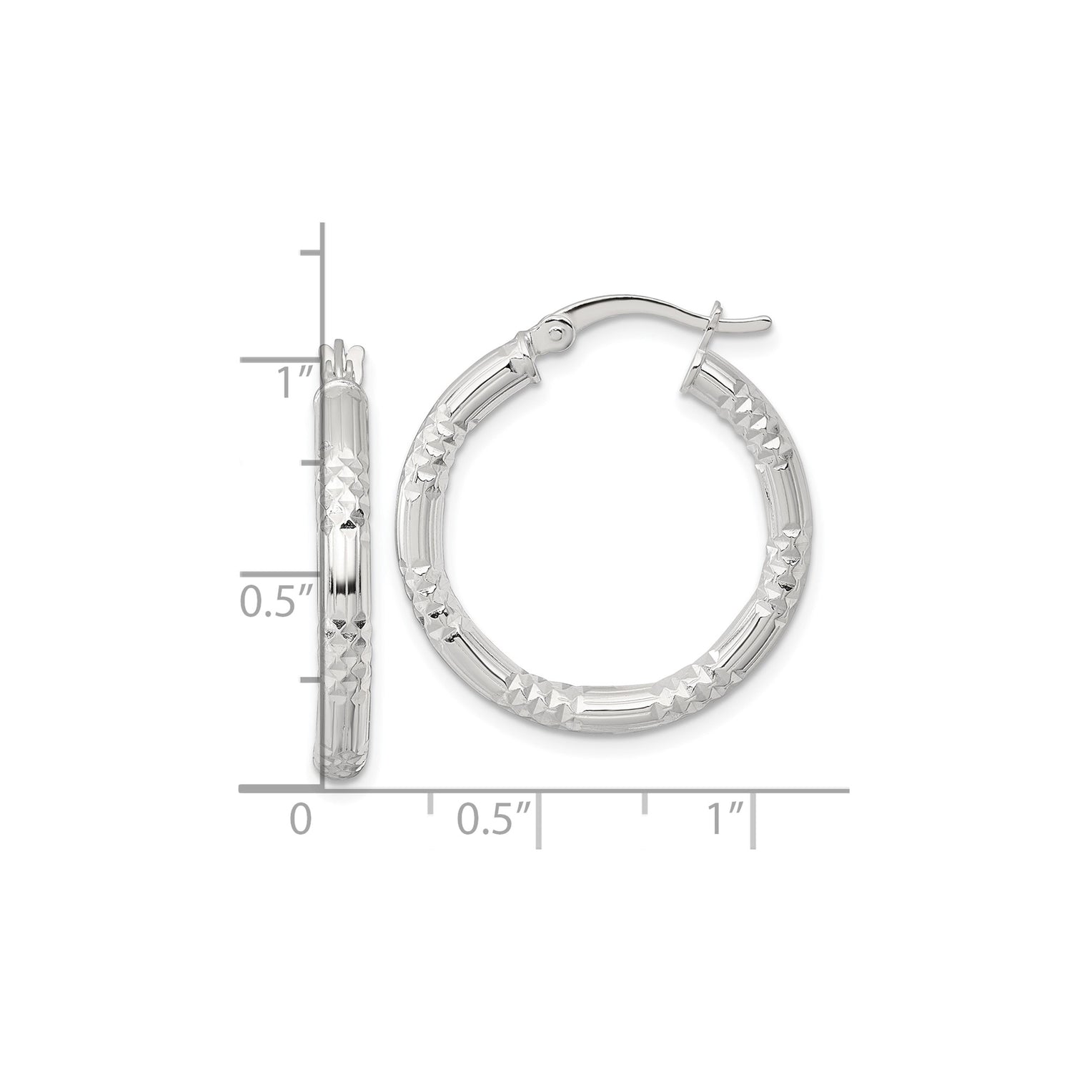 Sterling Silver Hoop Earrings, Diamond Cut Textured Design with Grooved Finish