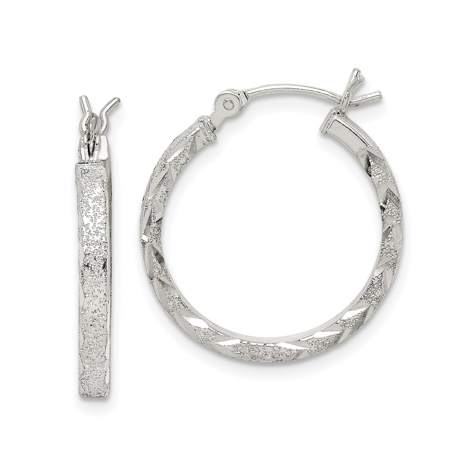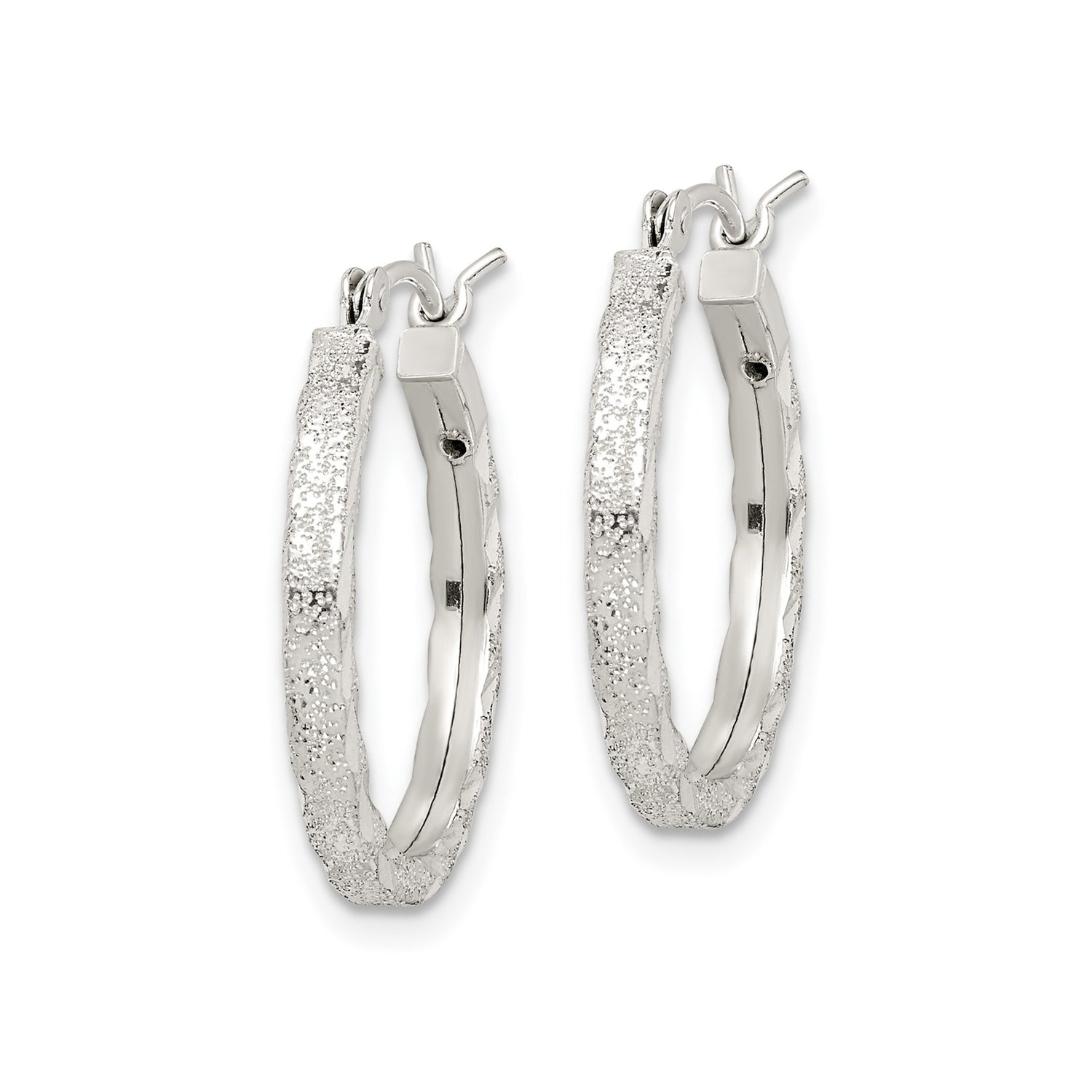 Sterling Silver Hoop Earrings, Diamond Cut Textured Round Design with Polished and Frosted Finish