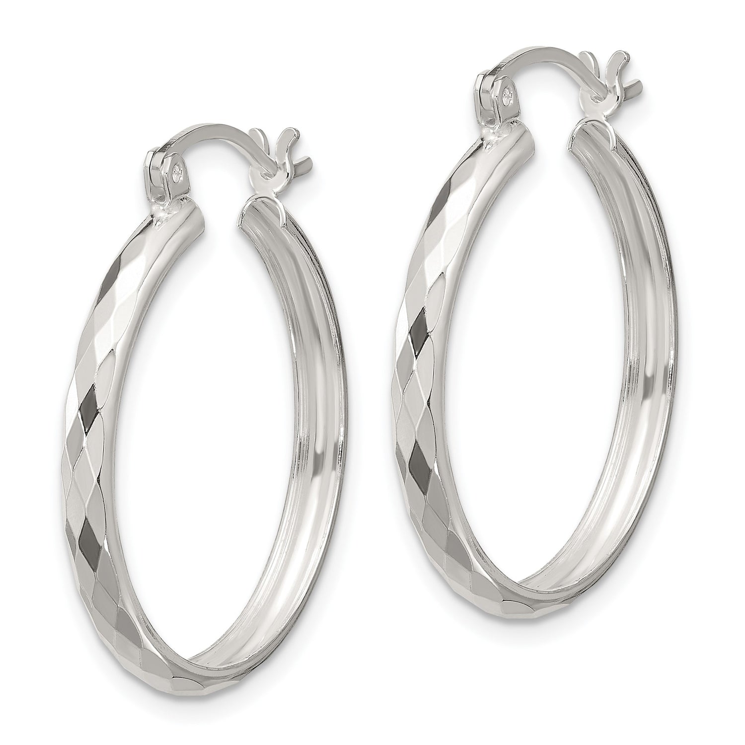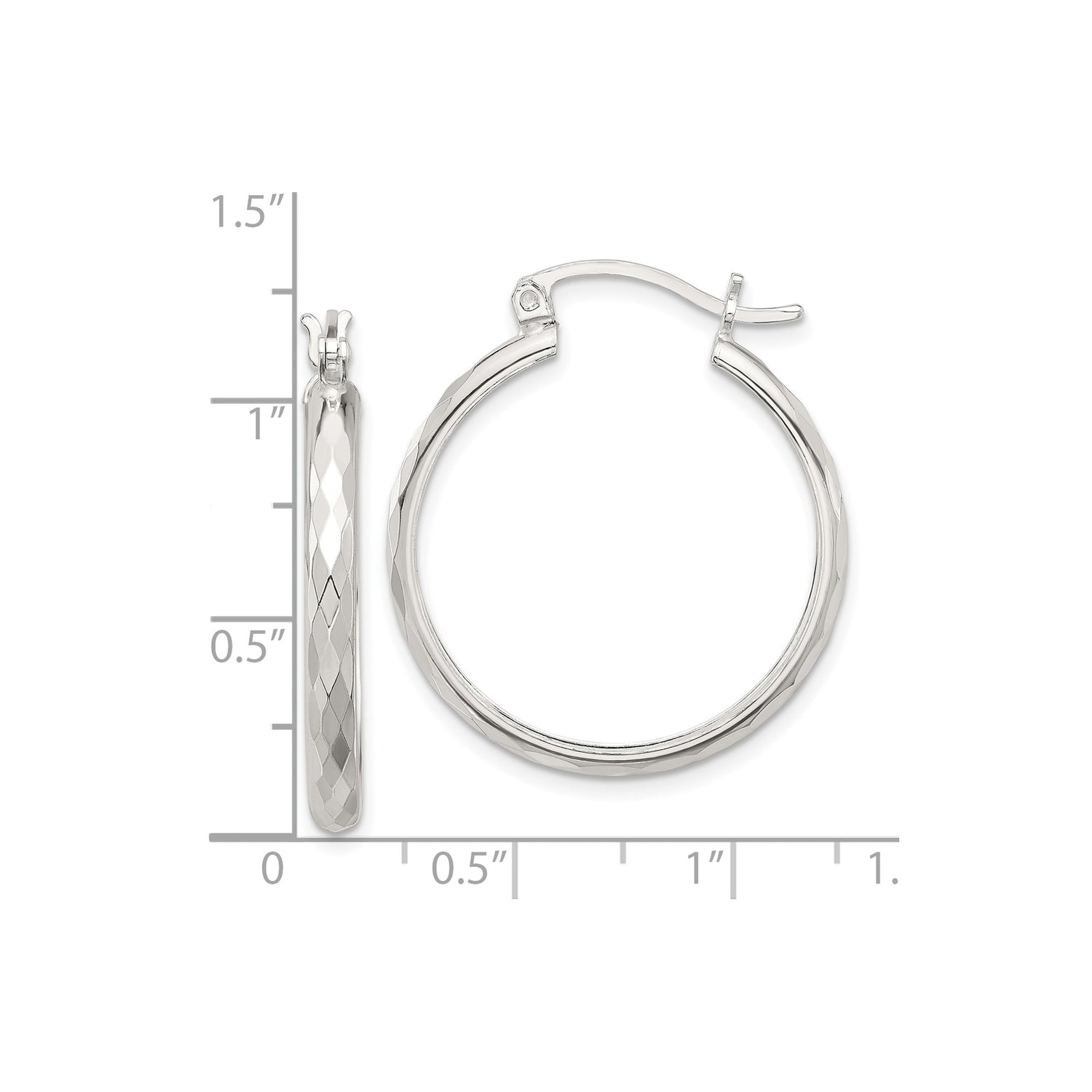 Sterling Silver Hoop Earrings, Diamond-Cut Textured Round Design with Polished Finish