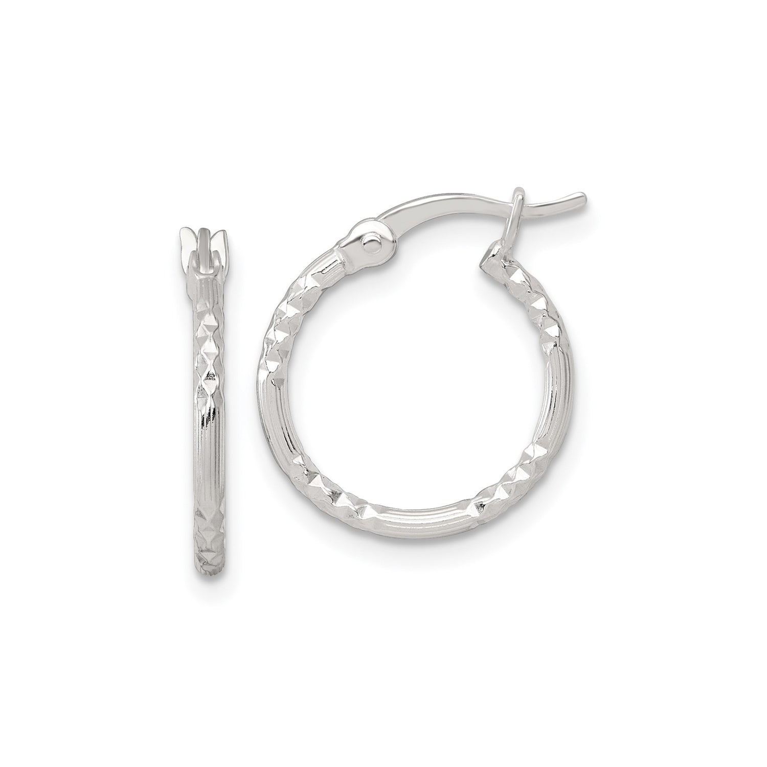 Sterling Silver Hoop Earrings, Diamond Cut Textured Round Hoops with Latch Back Closure