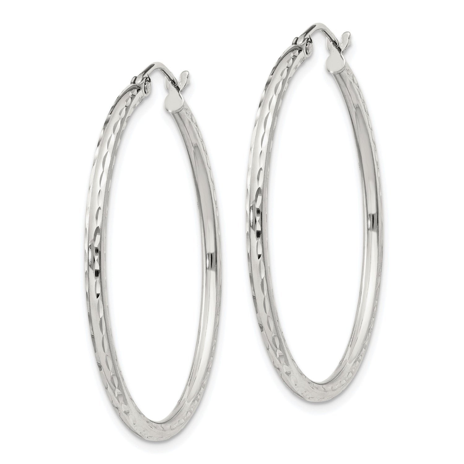 Sterling Silver Hoop Earrings, Diamond Cut Textured with Polished Faceted Finish