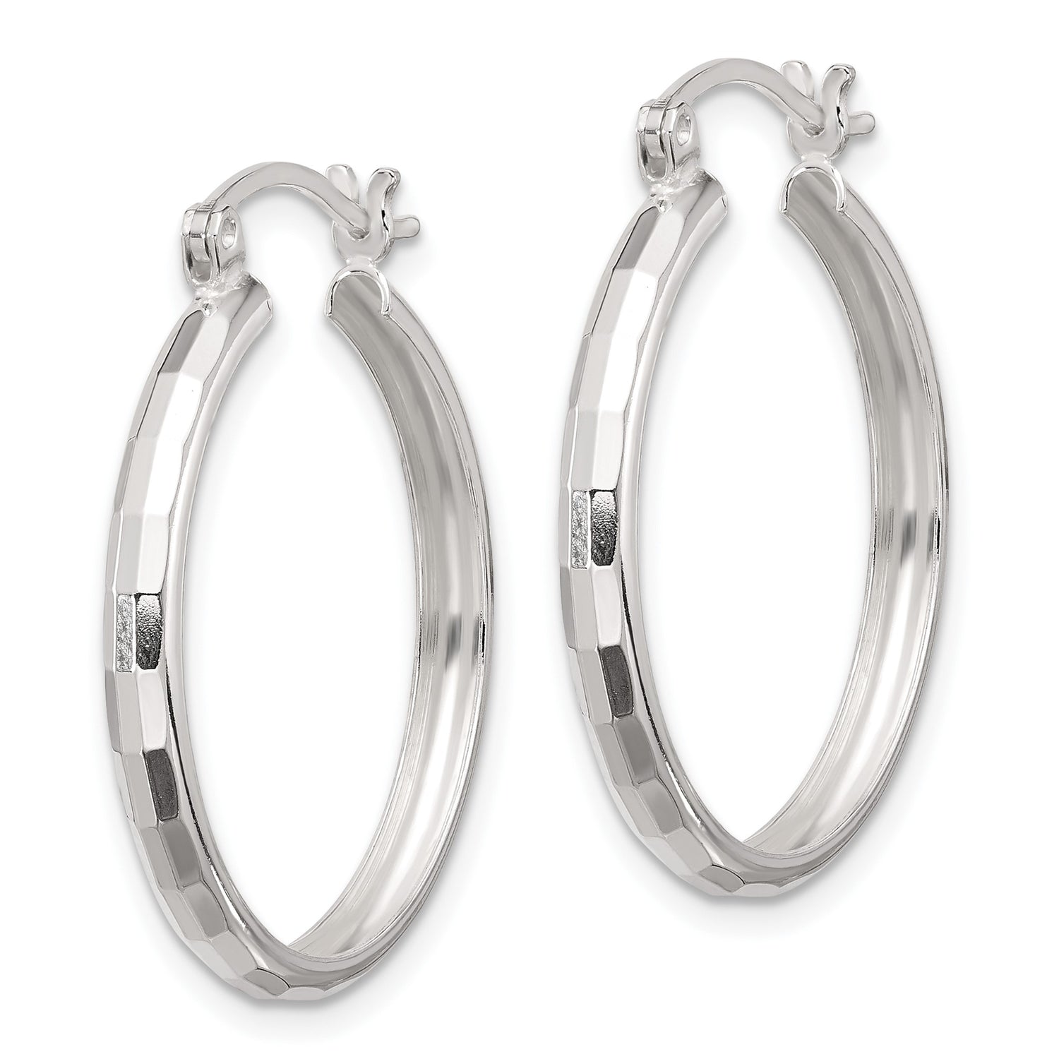Enhance Your Daily Style With These Sleek Sterling Silver Hoops Designed For Those Who Appreciate Subtle Elegance And Modern Minimalist Jewelry. Featuring A Faceted Surface That Reflects Light With Every Movement, These Elegant Silver Earrings Capture The Essence Of Refined Simplicity. A Polished Finish Adds To The Mirror-Like Shine, Making These Lightweight Everyday Silver Hoops A Staple For Effortless Sophistication.