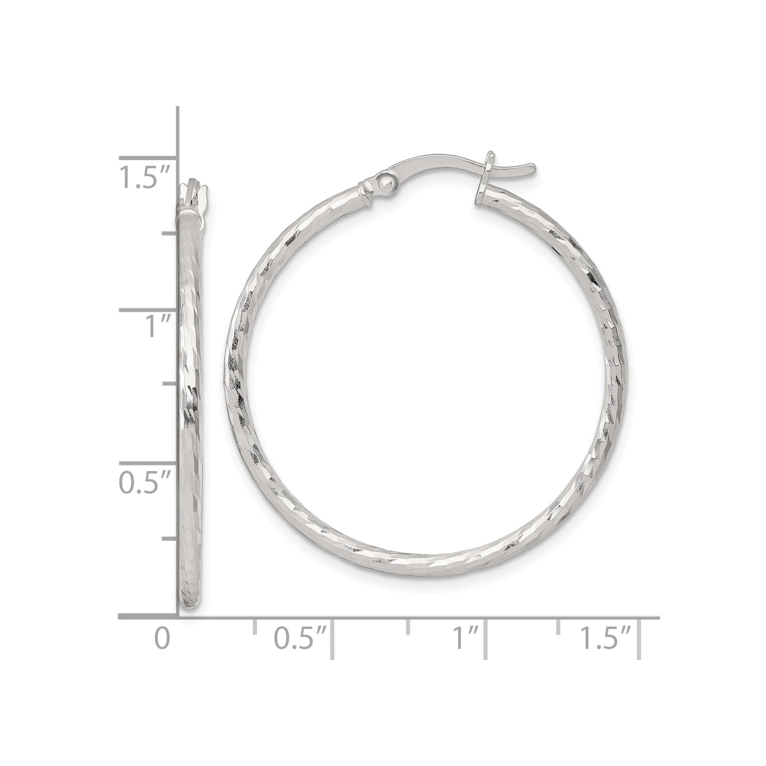 Sterling Silver Hoop Earrings, Hammered Faceted Texture, Lightweight Medium Round Design