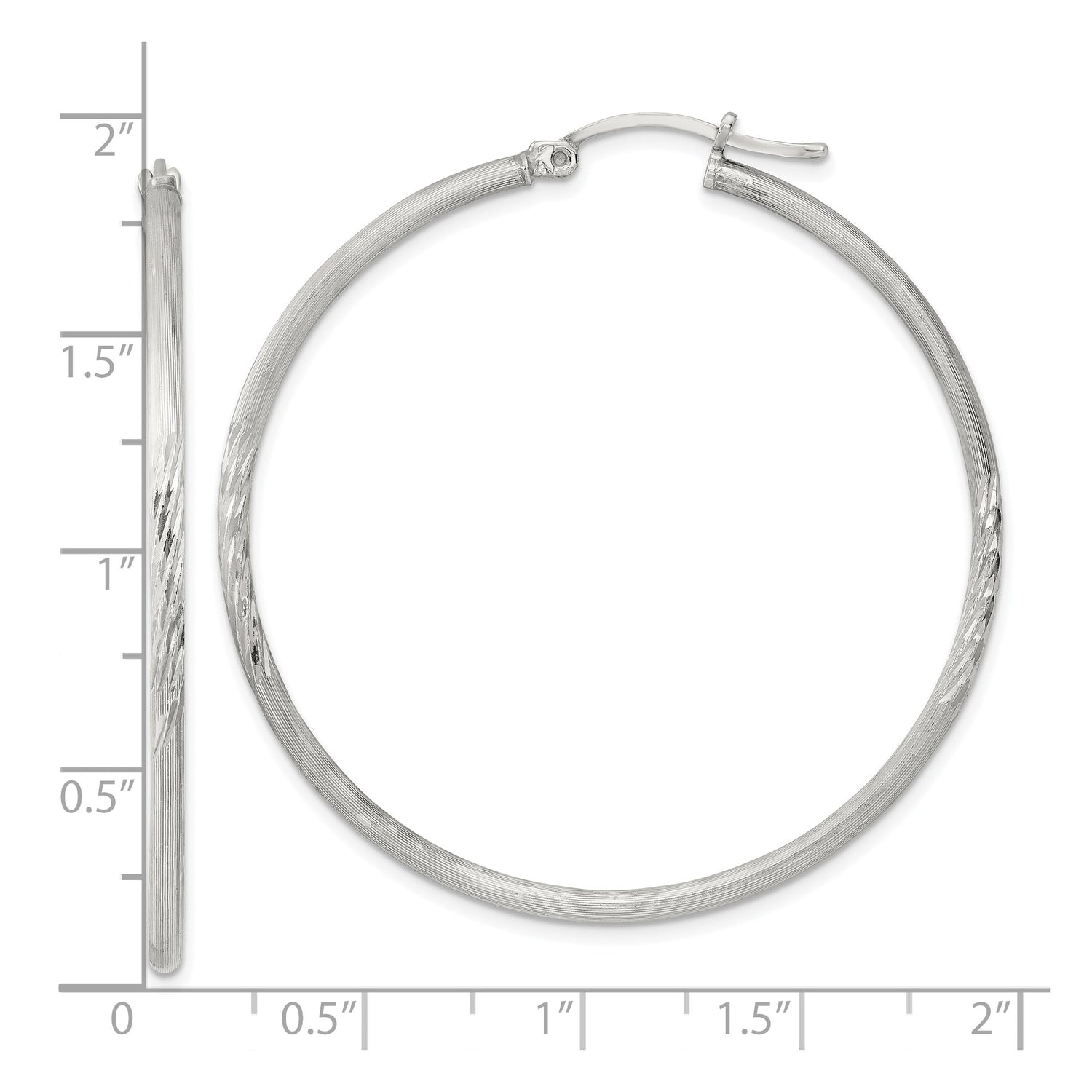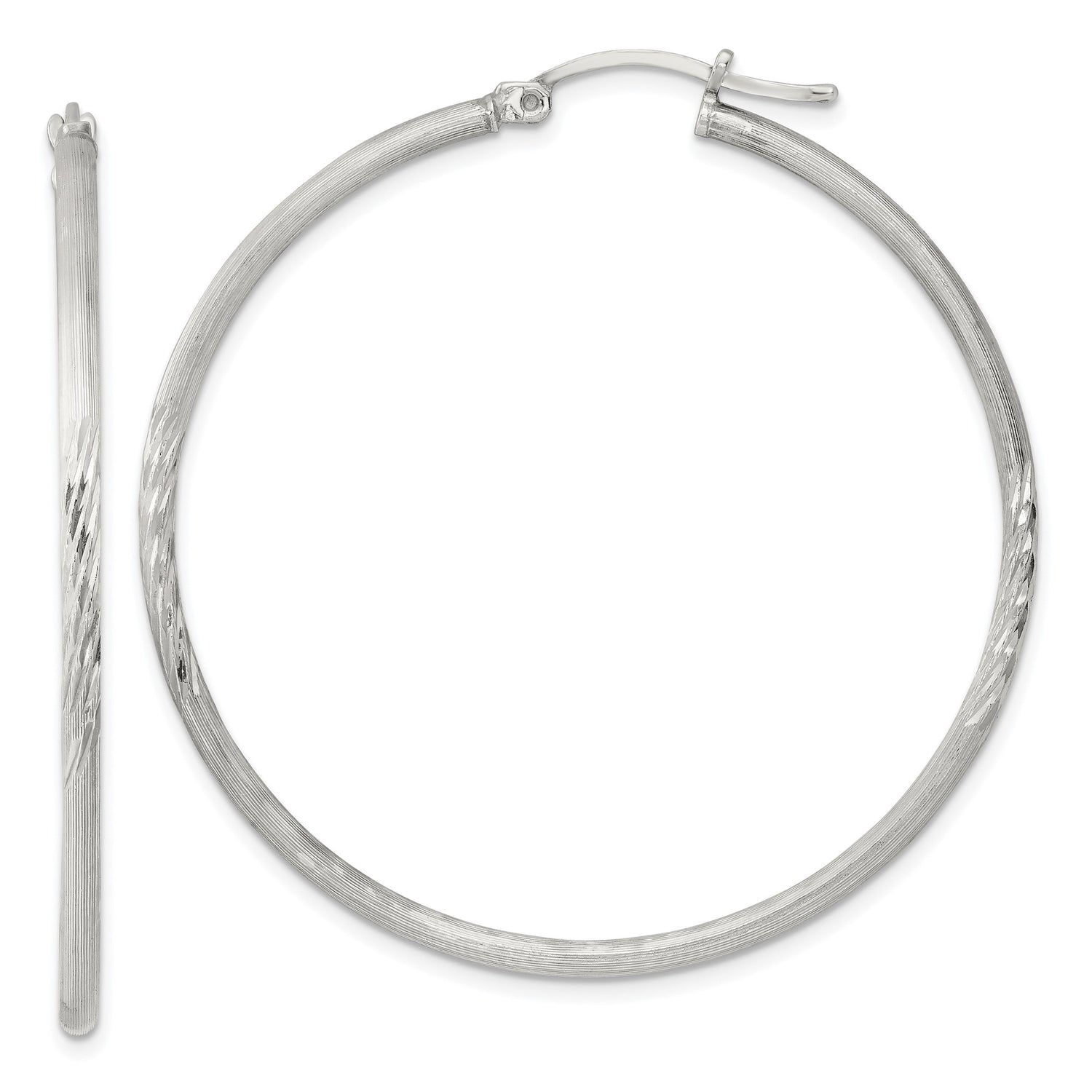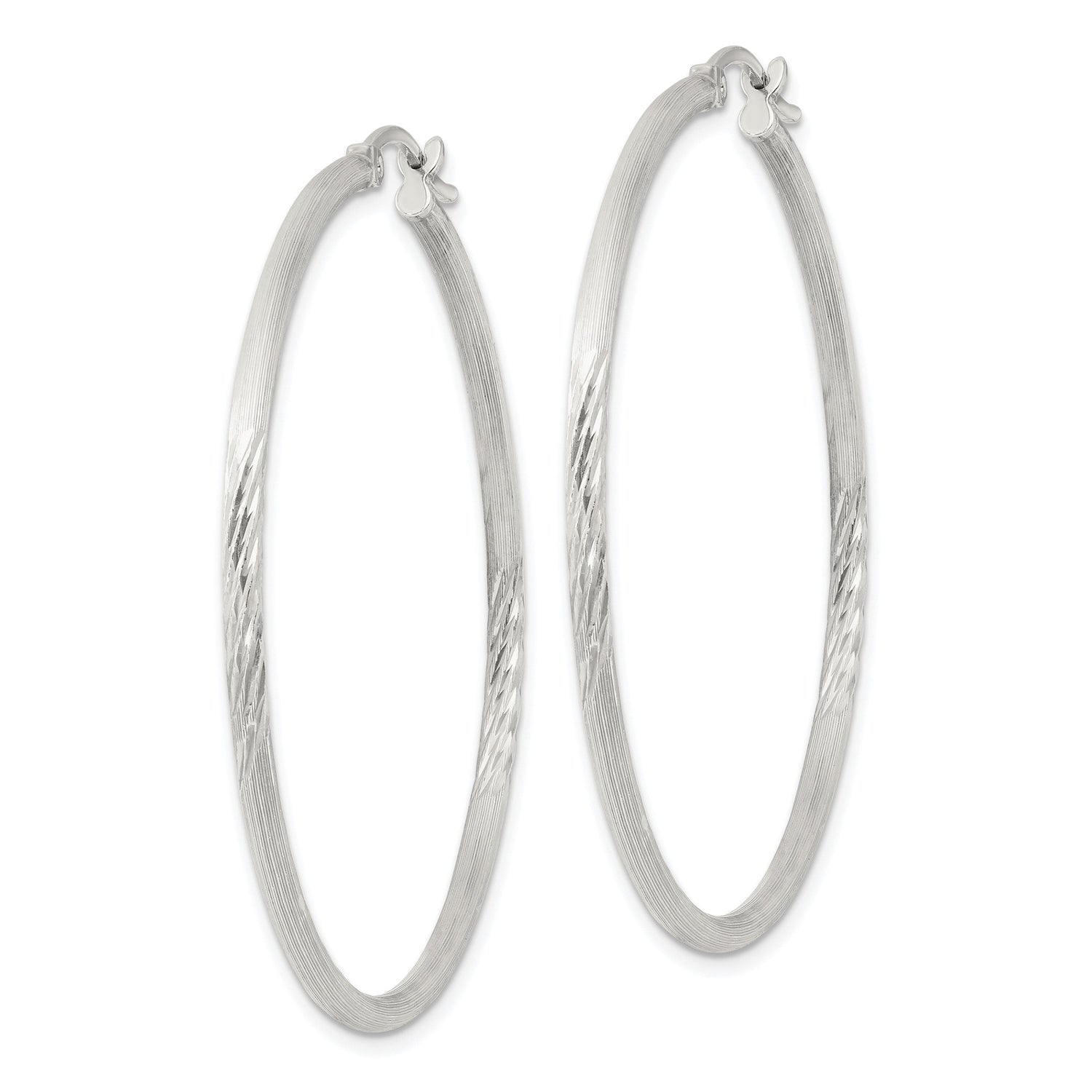 Sterling Silver Hoop Earrings, Large Round Diamond Cut Textured Polished Finish