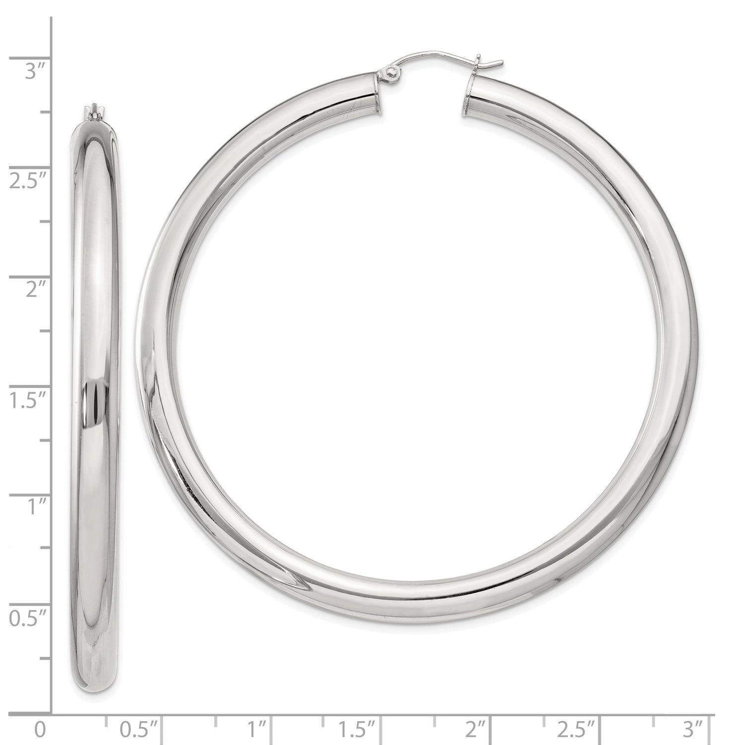 Sterling Silver Hoop Earrings, Large Round Polished Minimalist Design for Women