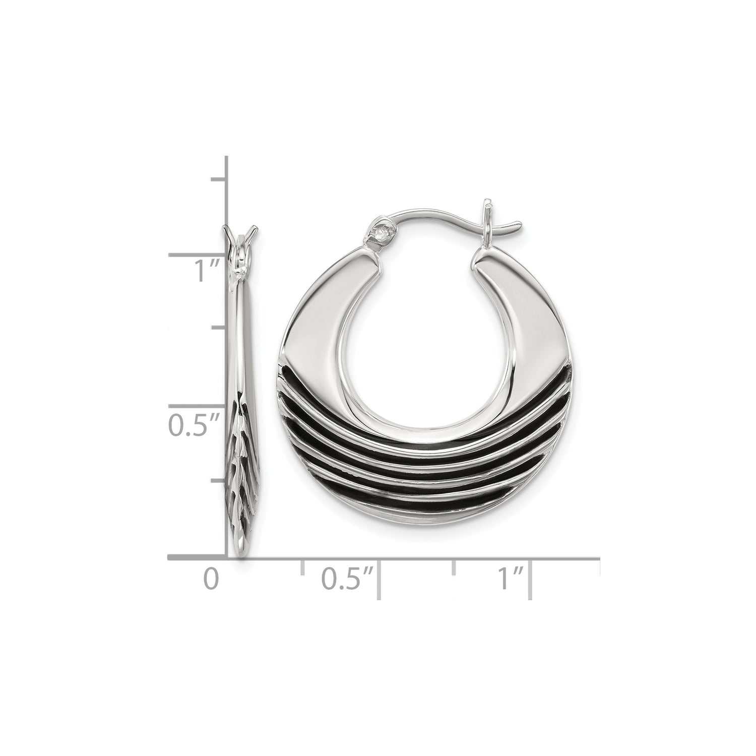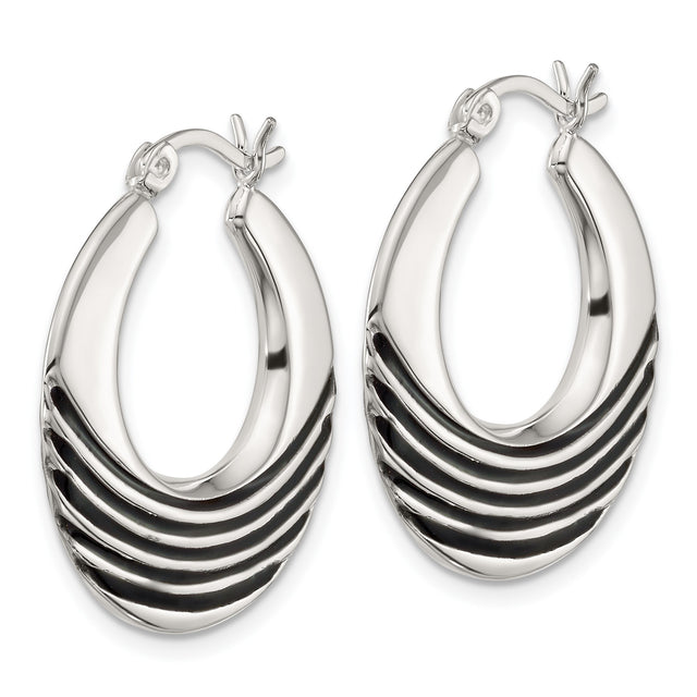 Sterling Silver Hoop Earrings, Layered Bold Design with Textured Ridges for Women