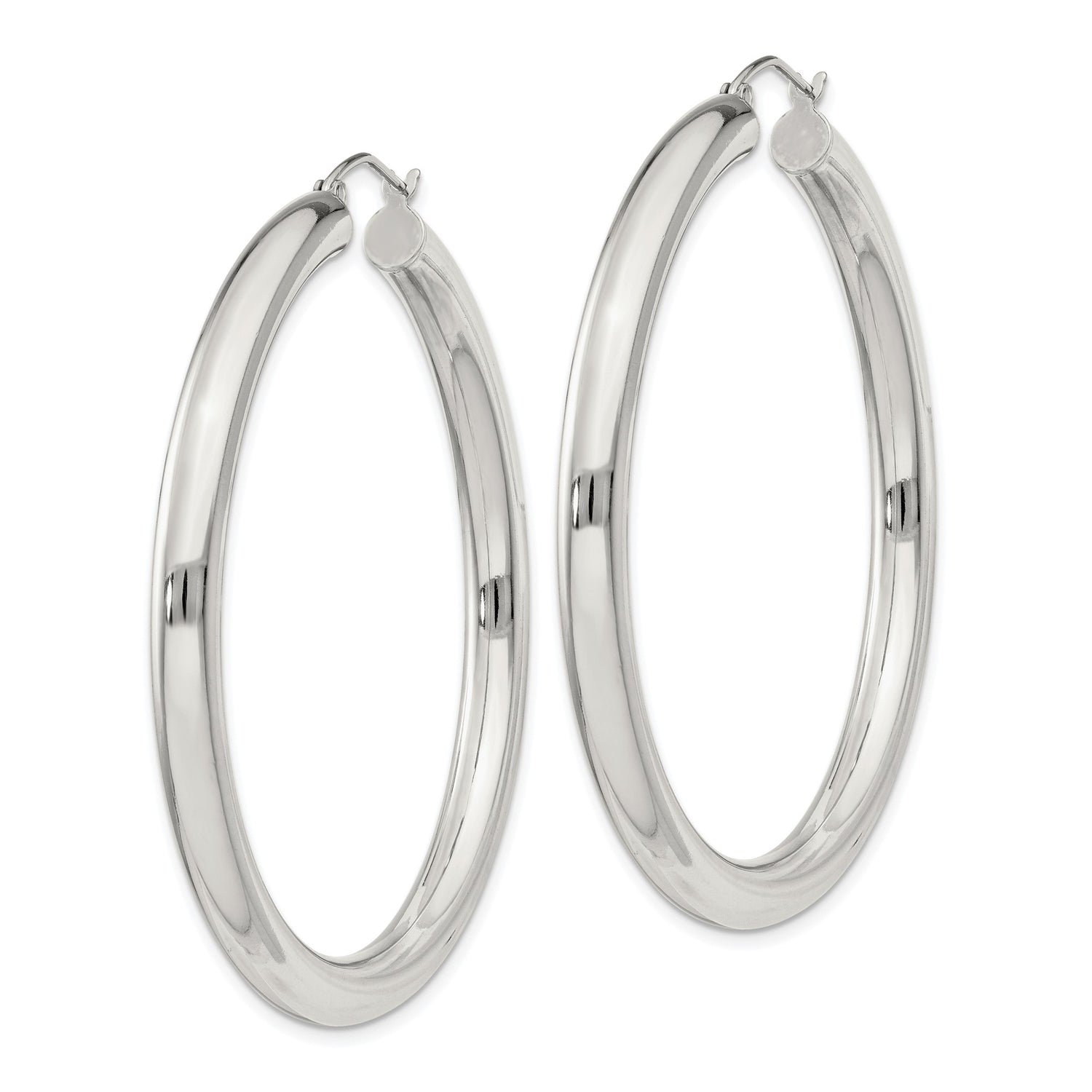Sterling Silver Hoop Earrings, Medium to Large Round Polished Hoops, Minimalist Modern Style