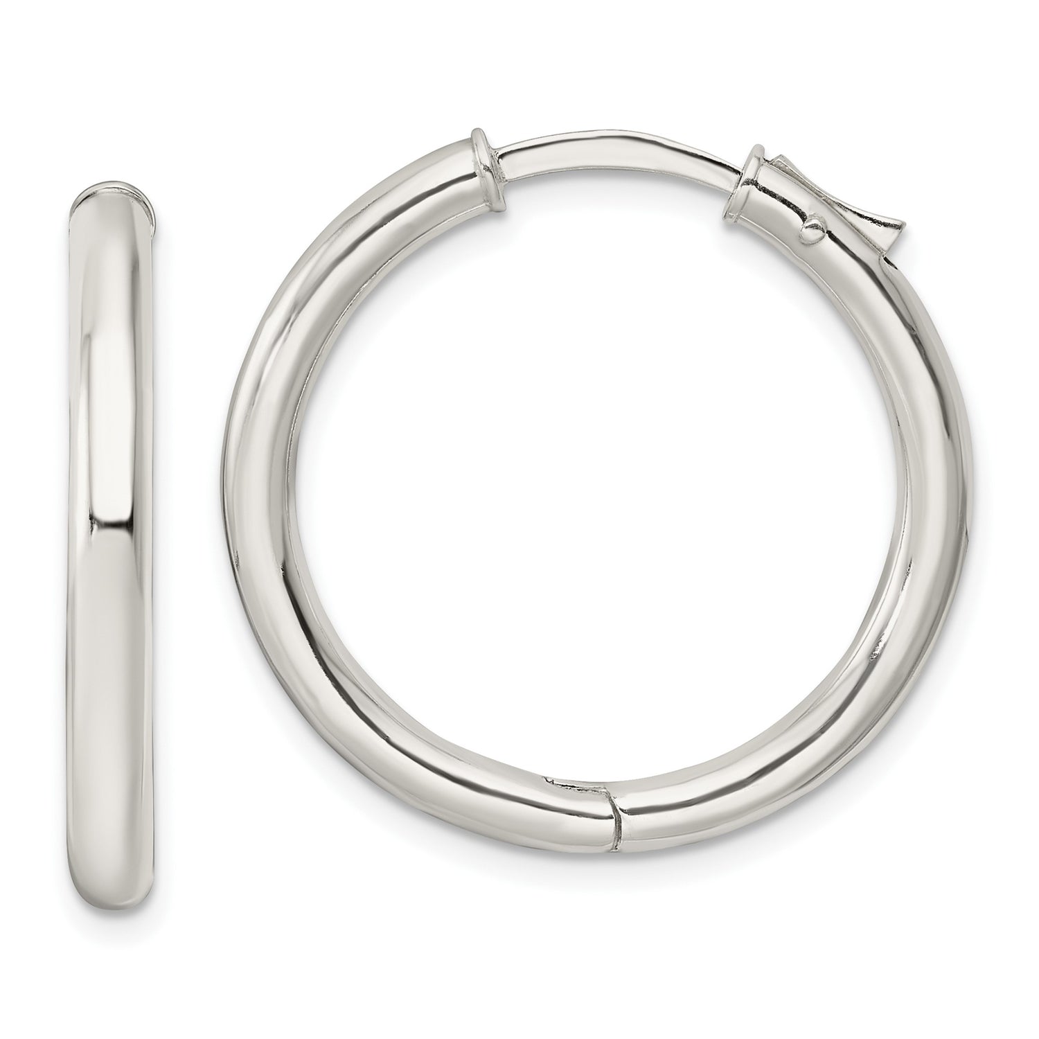 Sterling Silver Hoop Earrings, Polished Round Hinged Tube, Lightweight Medium Size Style