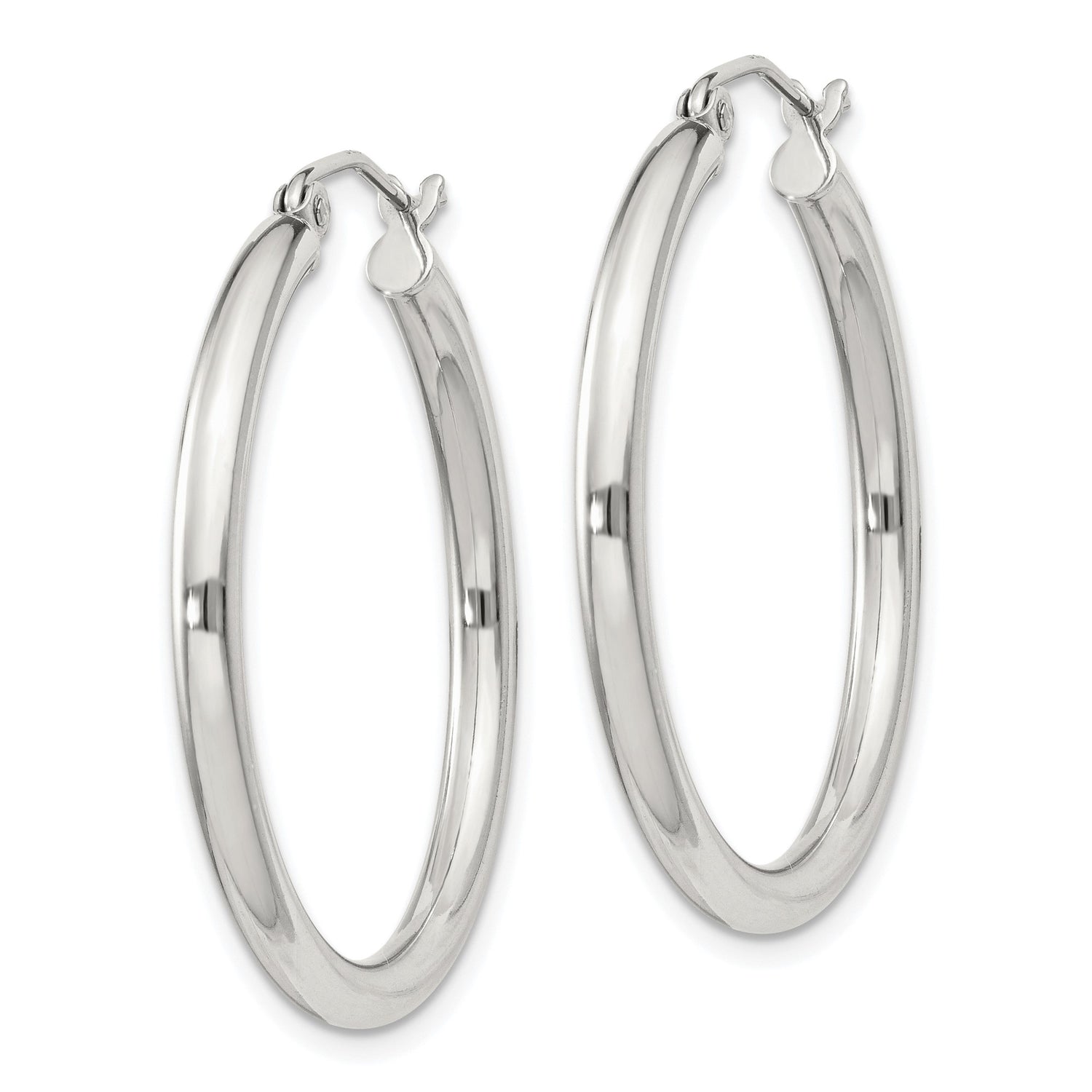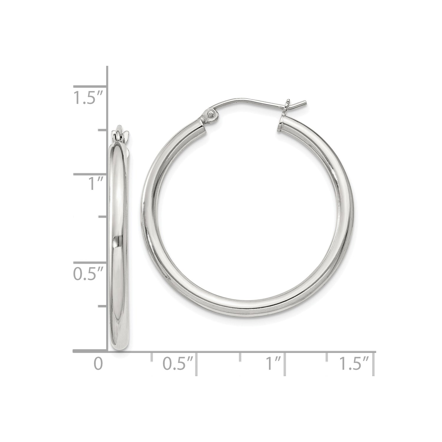 Sterling Silver Hoop Earrings, Smooth Polished Finish, Classic Round Design, Latch Back Closure