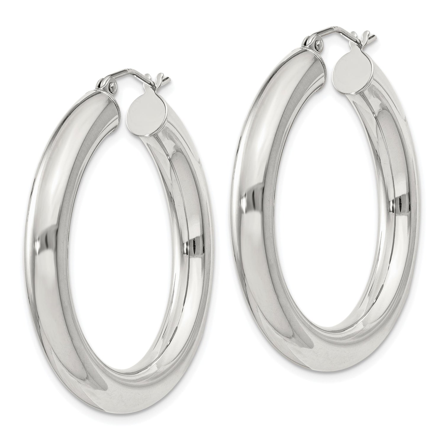 Sterling Silver Hoop Earrings, Thick Tubular Round Design, Polished Minimalist Style for Women
