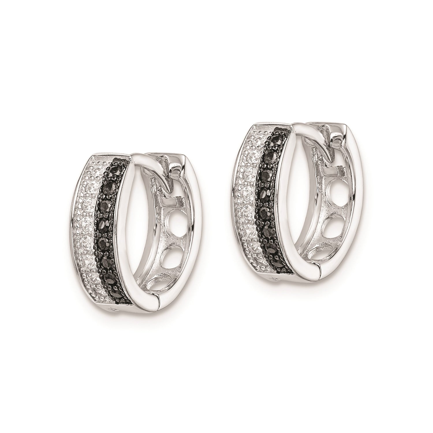 Sterling Silver Hoop Earrings with Black and White Cubic Zirconia, Huggie Style