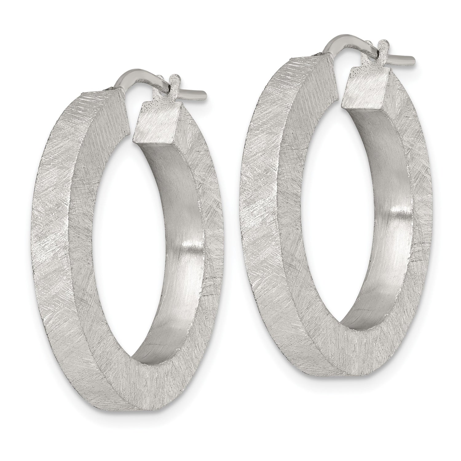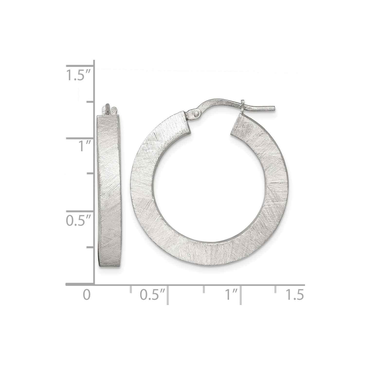 Sterling Silver Hoop Earrings with Brushed Finish, Wide Flat Textured Design for Women