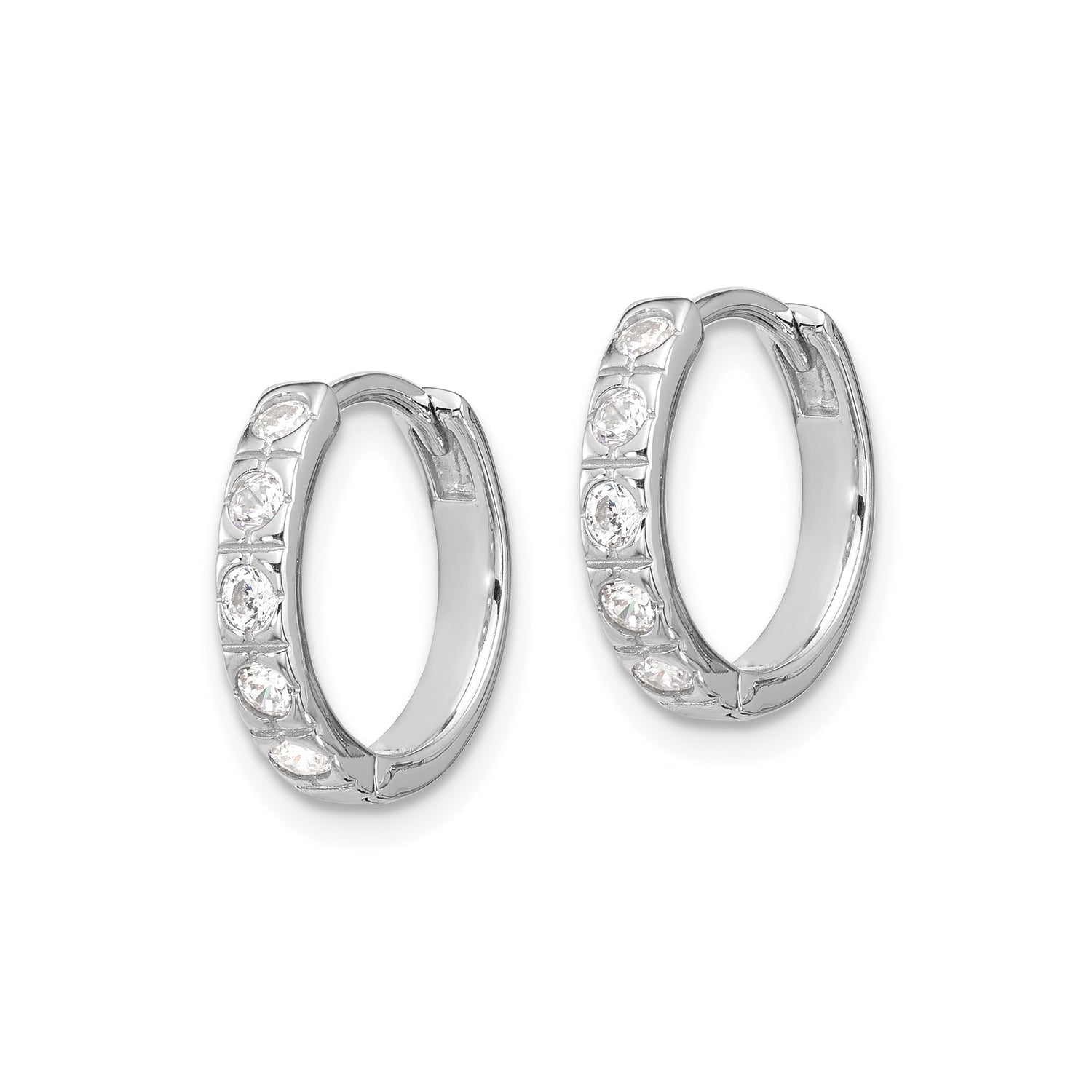 Thoughtfully Designed for Everyday Wear These Lightweight Hoop Earrings Offer a Sleek Profile and Sleep-Friendly Comfort. Five Brilliant Round Cubic Zirconia Stones Are Channel Set Within Each Hoop Giving the Look of Classic Round Stone Earrings Without Overpowering Your Outfit. Whether Youre Headed to the Office or a Night Out These Dainty Silver Hoops Effortlessly Adapt to Any Setting Providing the Ideal Finishing Touch.