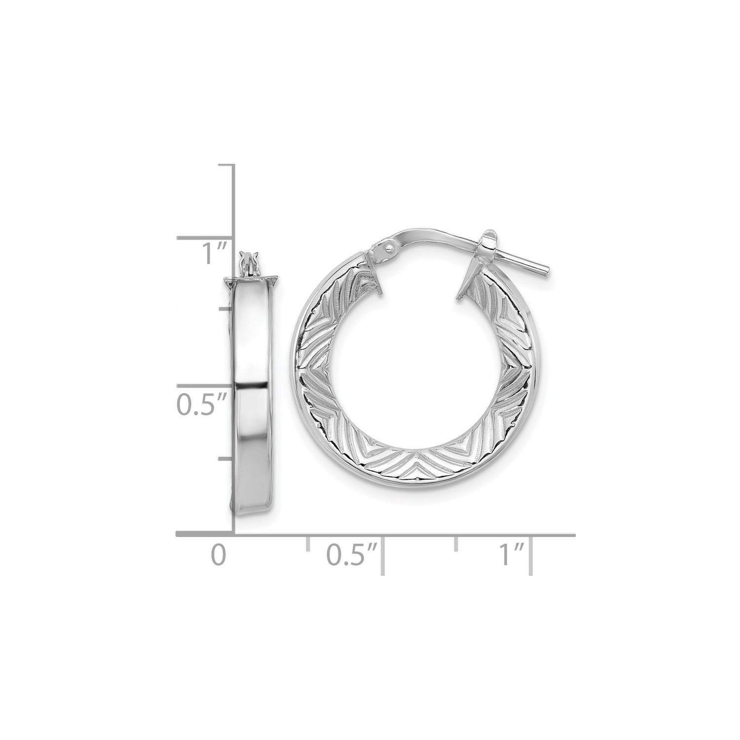 Sterling Silver Hoop Earrings with Chevron Pattern, Geometric Design, Polished Textured Finish