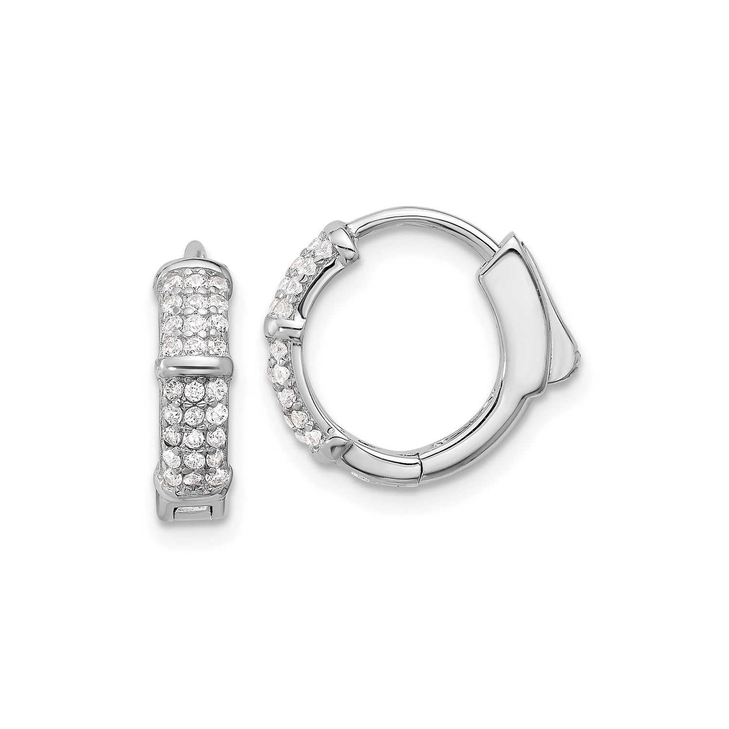 Designed for comfort and lightweight wear, these silver huggie pav earrings promise easy all-day styling. Whether worn with silver statement earrings or layered silver fashion hoops, they add a chic accent to any outfit. The solid sterling silver hoops create dimension with their textured bamboo design hoops, while the sparkle pav cz hoops deliver eye-catching radiance without overwhelming your look.
