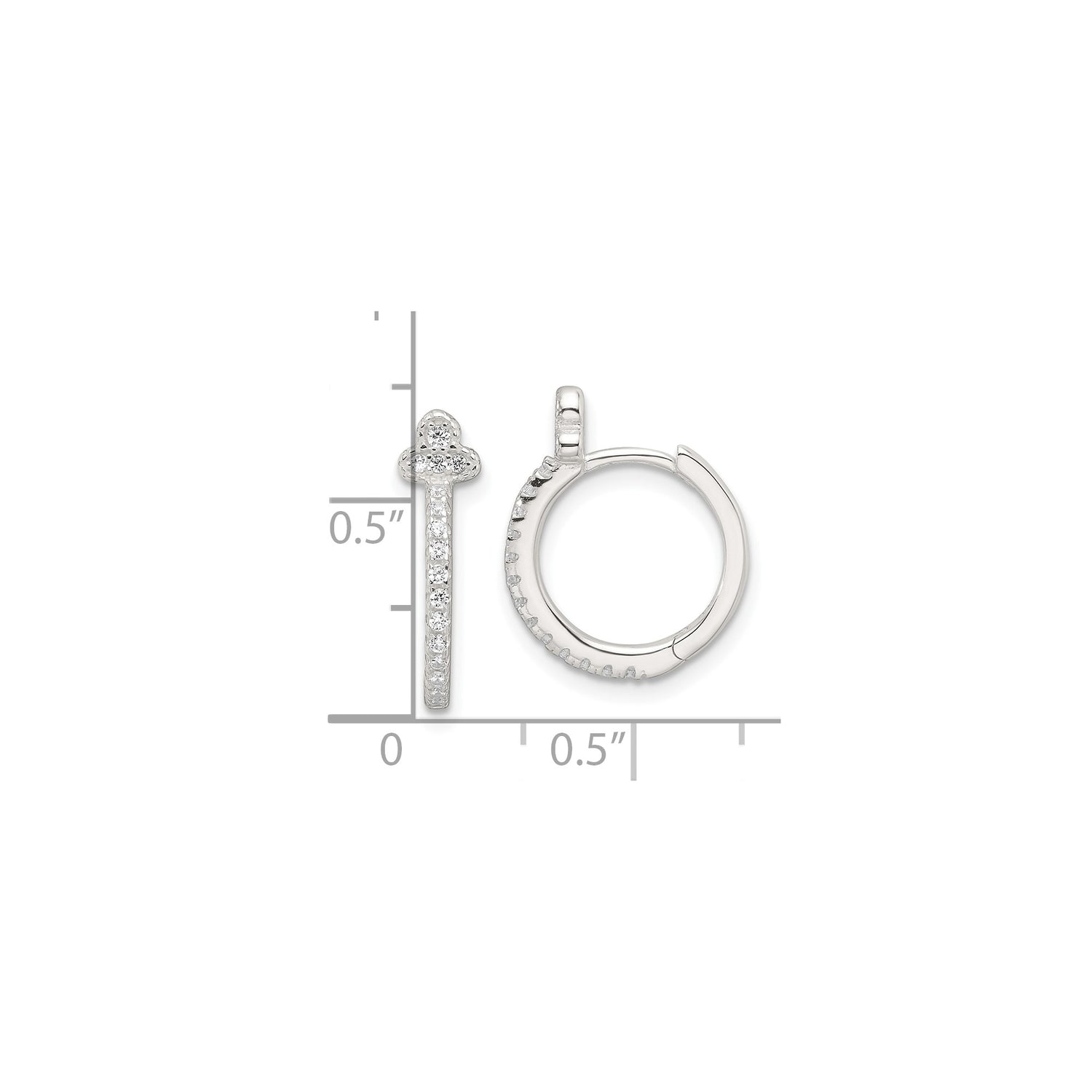 Sterling Silver Hoop Earrings with Cubic Zirconia, Fleur de Lis French Style