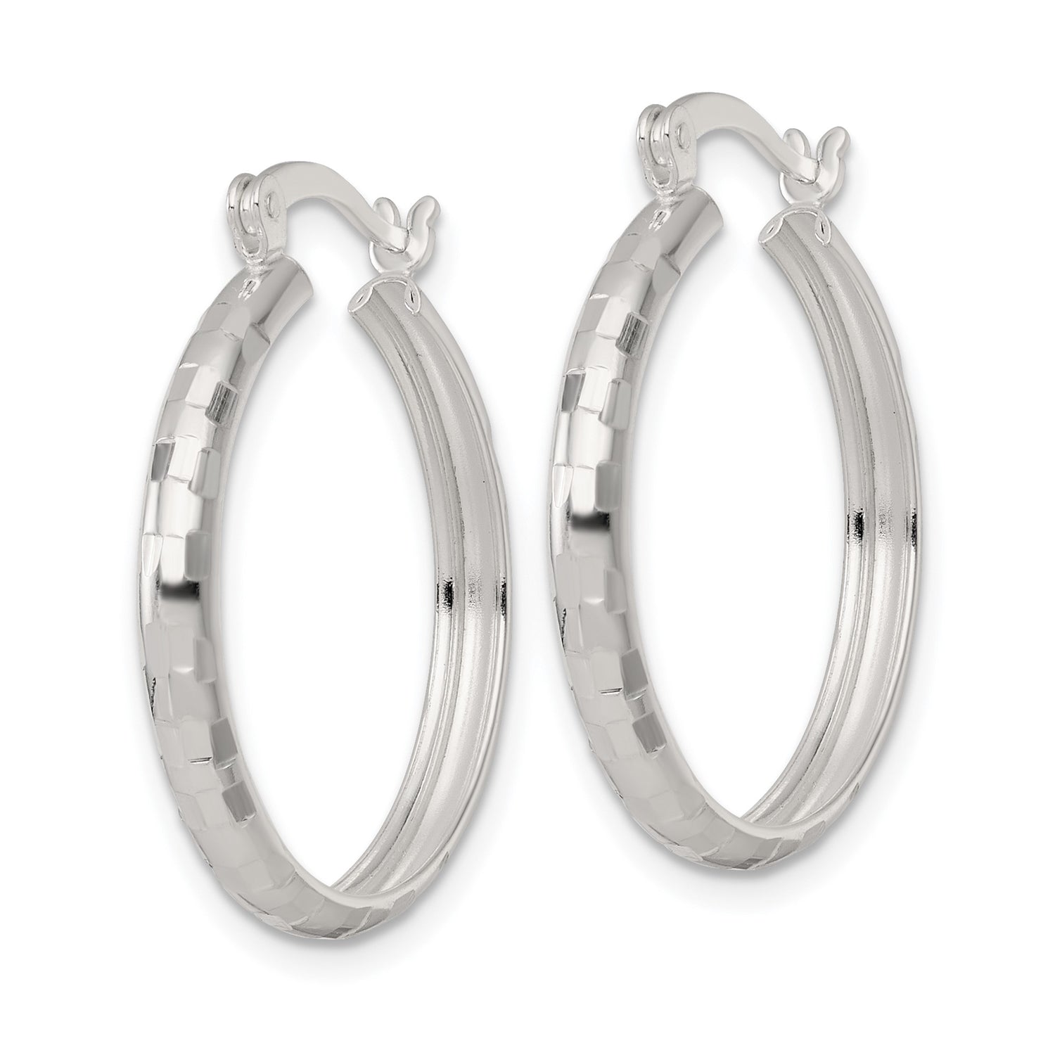 Sterling Silver Hoop Earrings with Diamond Cut Faceted Texture, Lightweight Minimalist Design