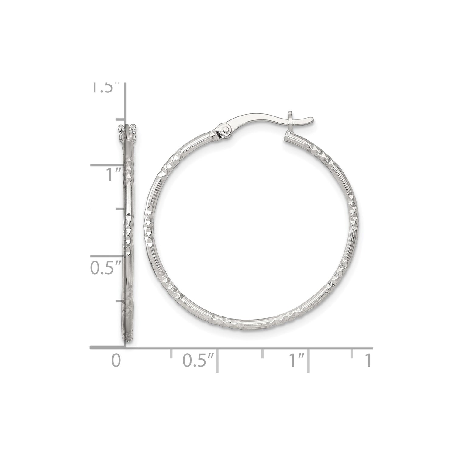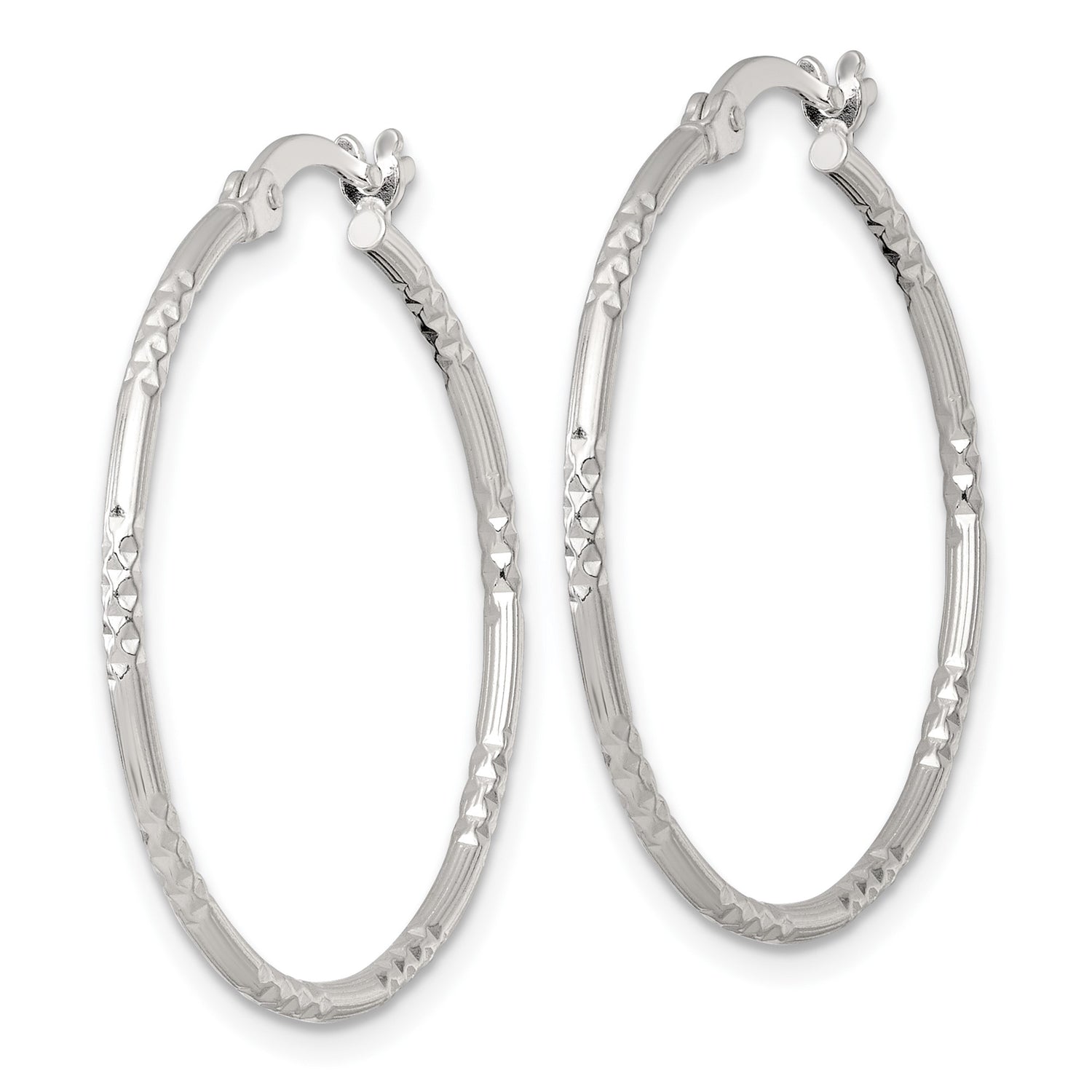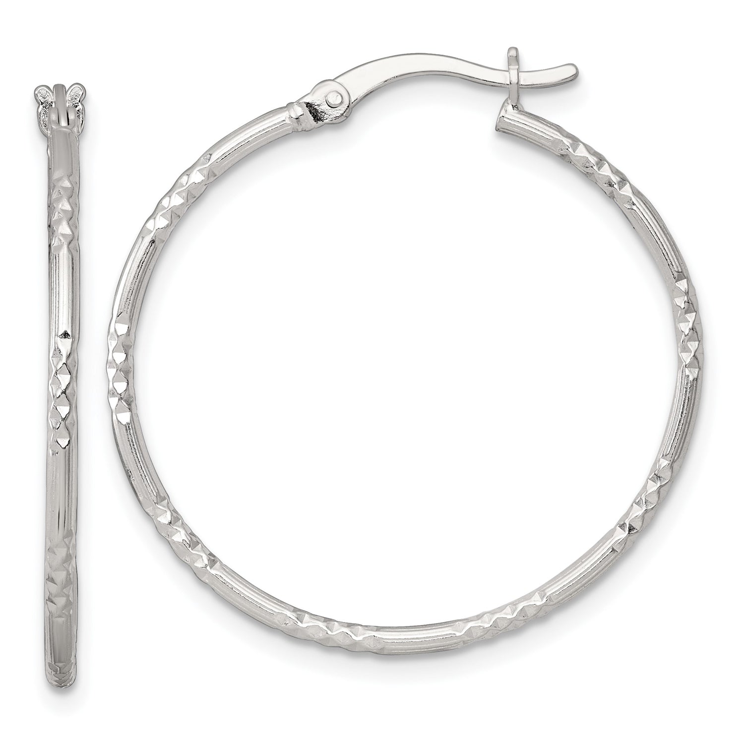 Sterling Silver Hoop Earrings with Diamond Cut Texture and Polished Finish, Medium Size