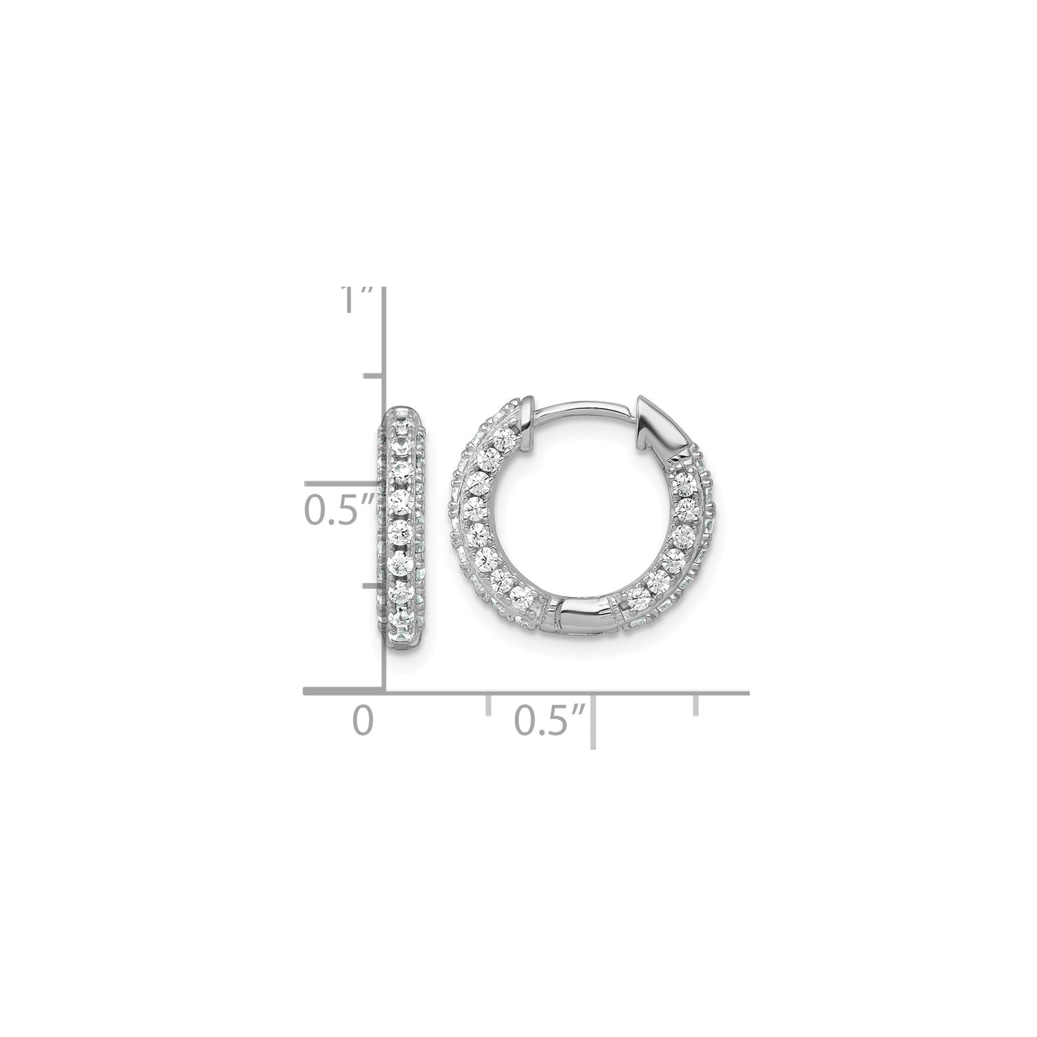 Sterling Silver Hoop Earrings with Double Row Round Cut Cubic Zirconia, Hinged Closure