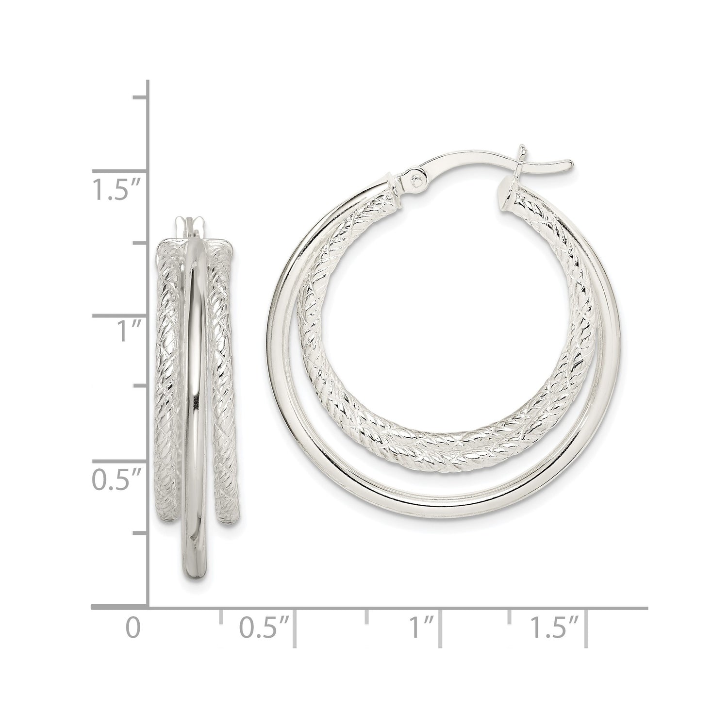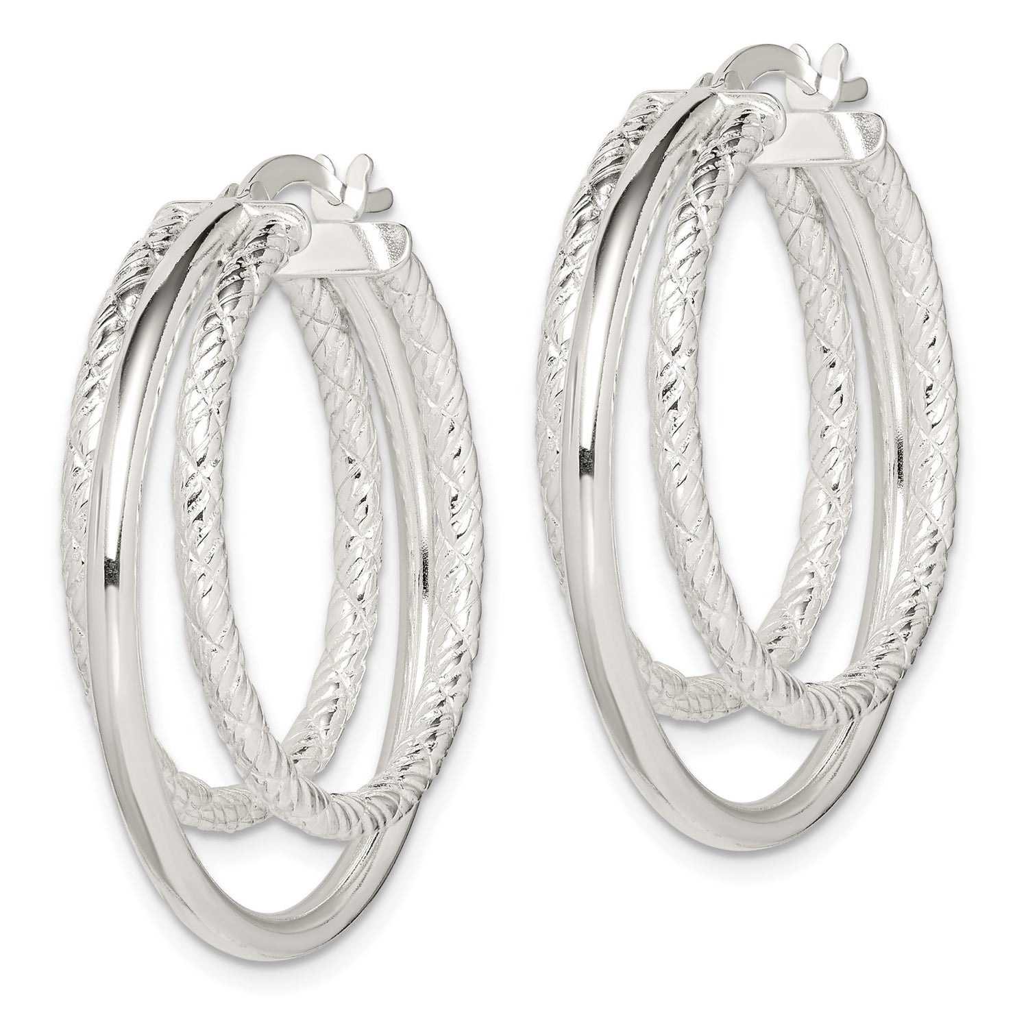 Sterling Silver Hoop Earrings with Dual Band Braided Polished and Textured Design for Women