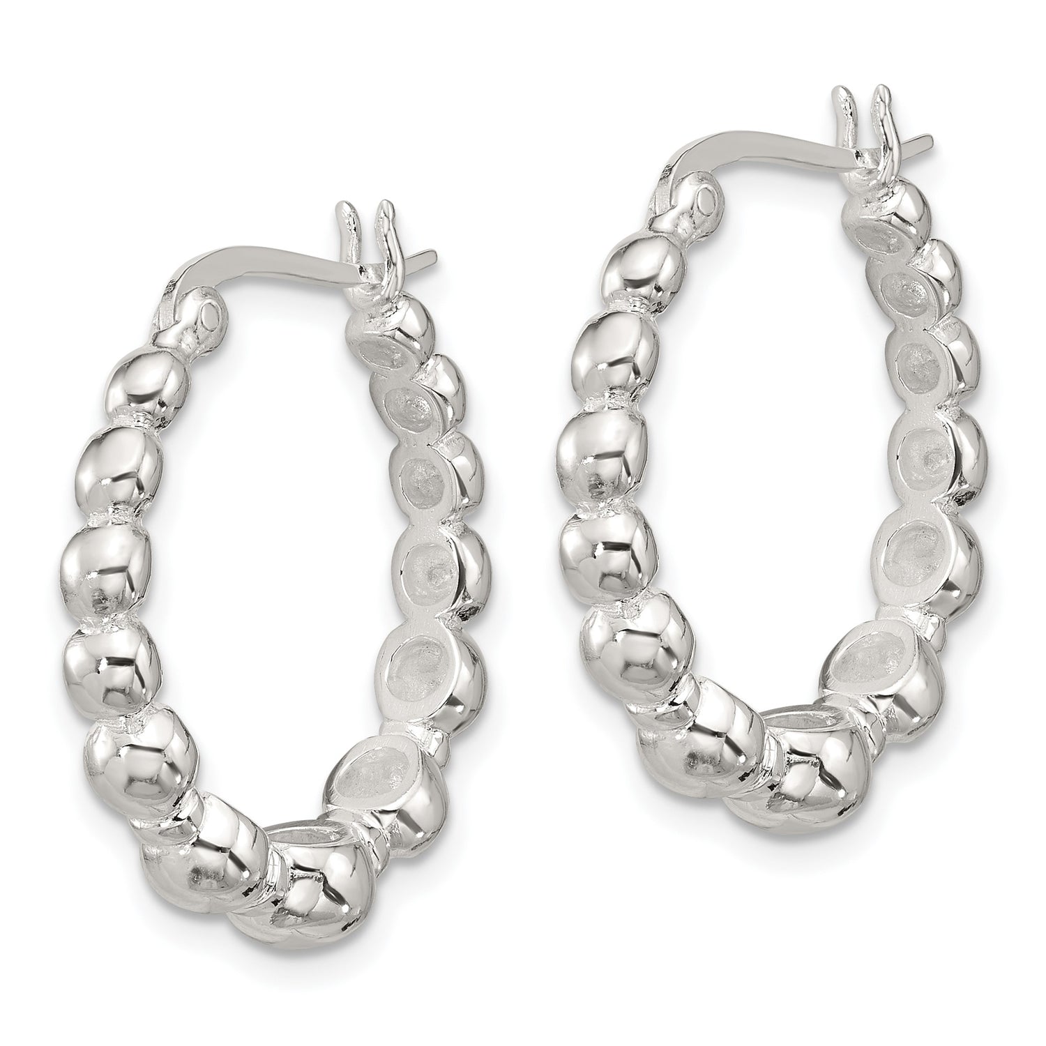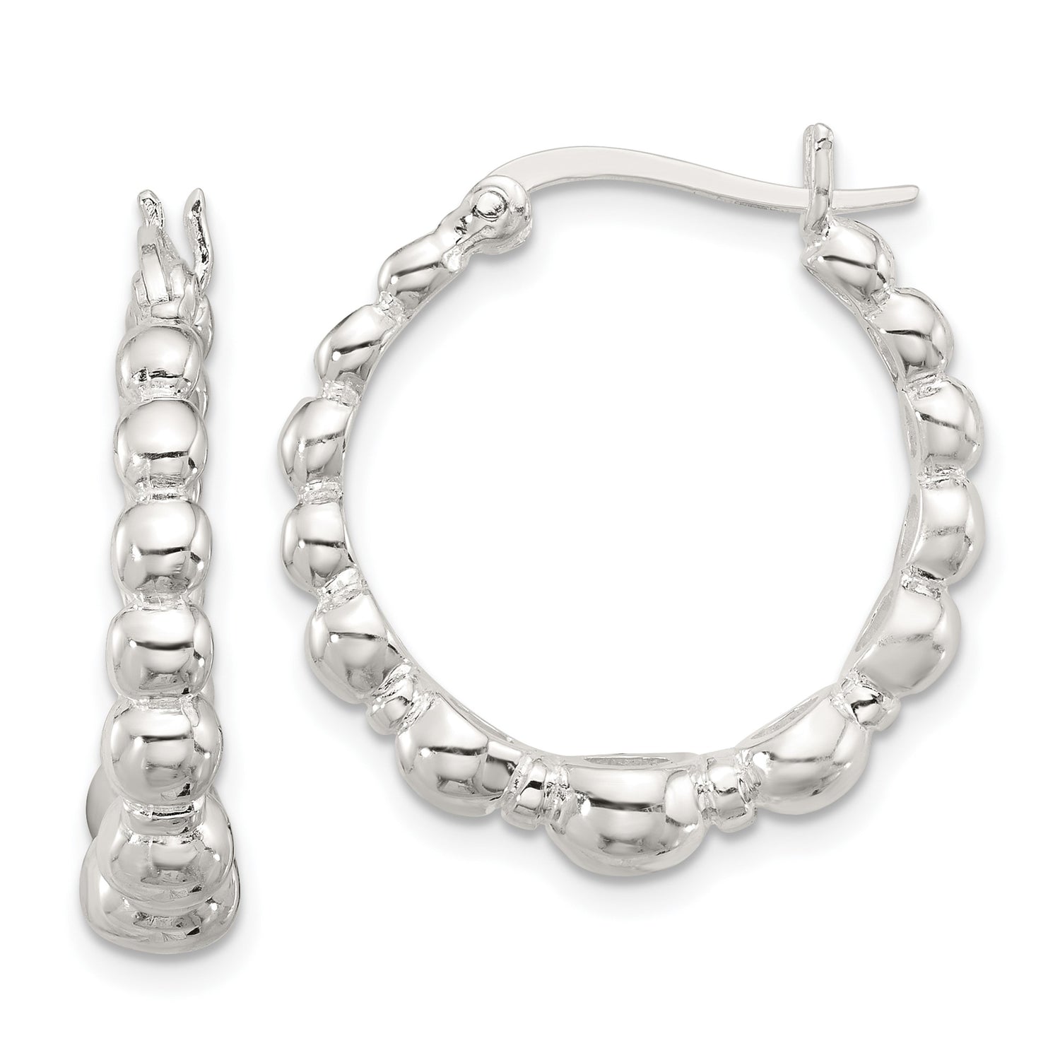 Add a touch of refined elegance to your wardrobe with these sterling silver hoop earrings women will love to wear all day. Crafted with smooth finishes and graceful curves, the rounded bead hoop earrings lend just the right balance of simplicity and sophistication. Graduated bead silver hoops create a subtle texture that brings refined dimension to these lightweight silver beaded hoops, perfect for modern looks from day to evening. Their timeless silhouette adds polished charm to any outfit while remaining fashion-forward and versatile for everyday styling.