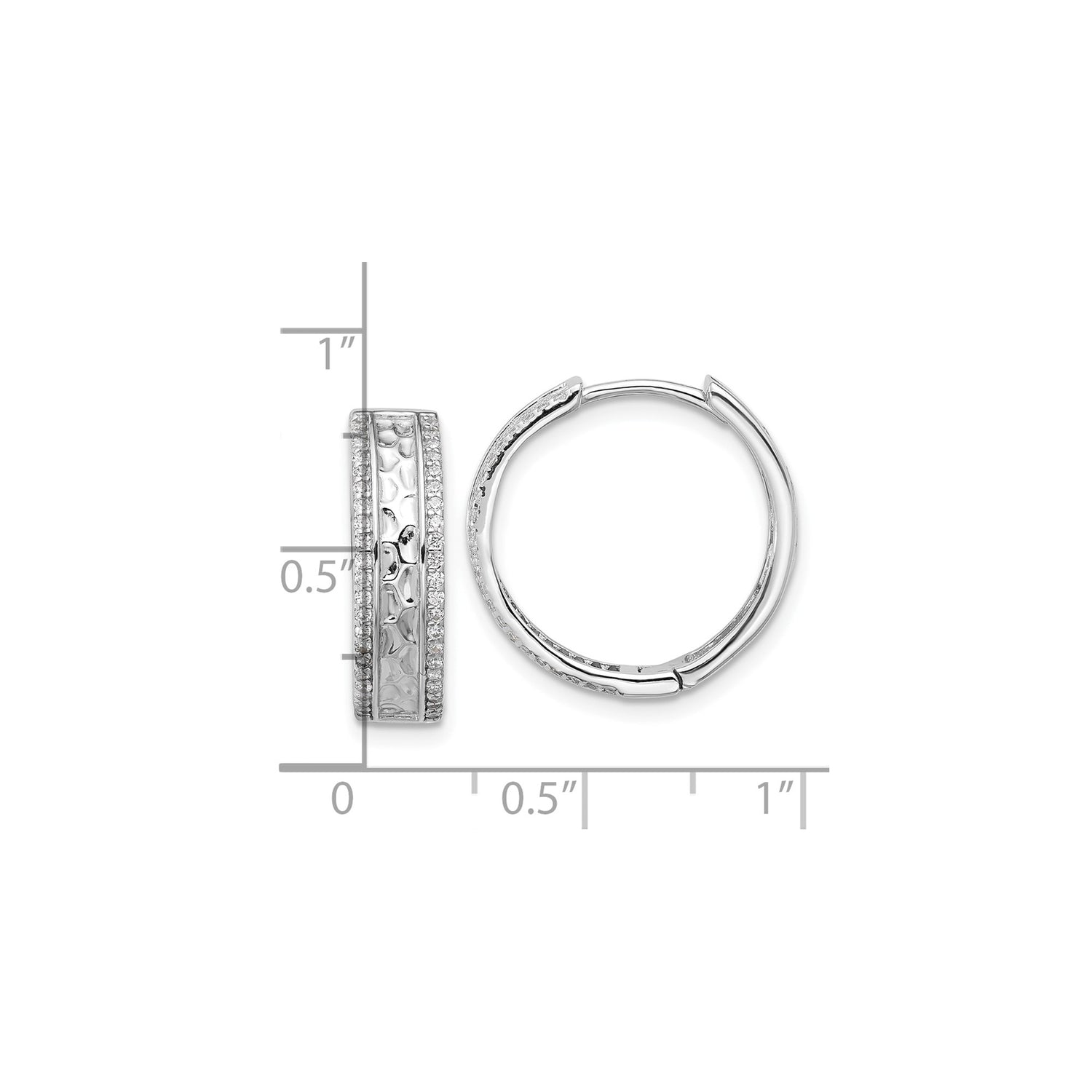 Sterling Silver Hoop Earrings with Hammered Texture and Cubic Zirconia Accents