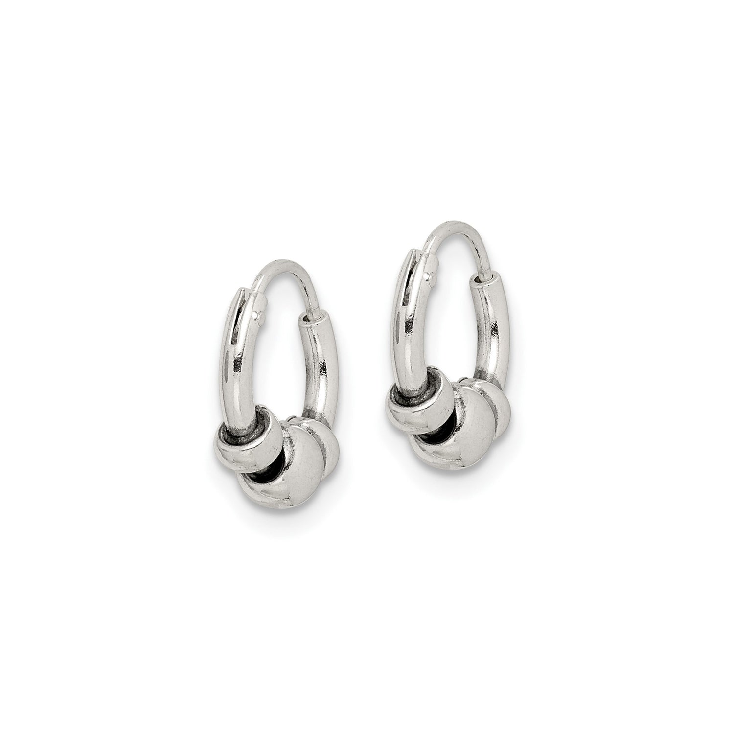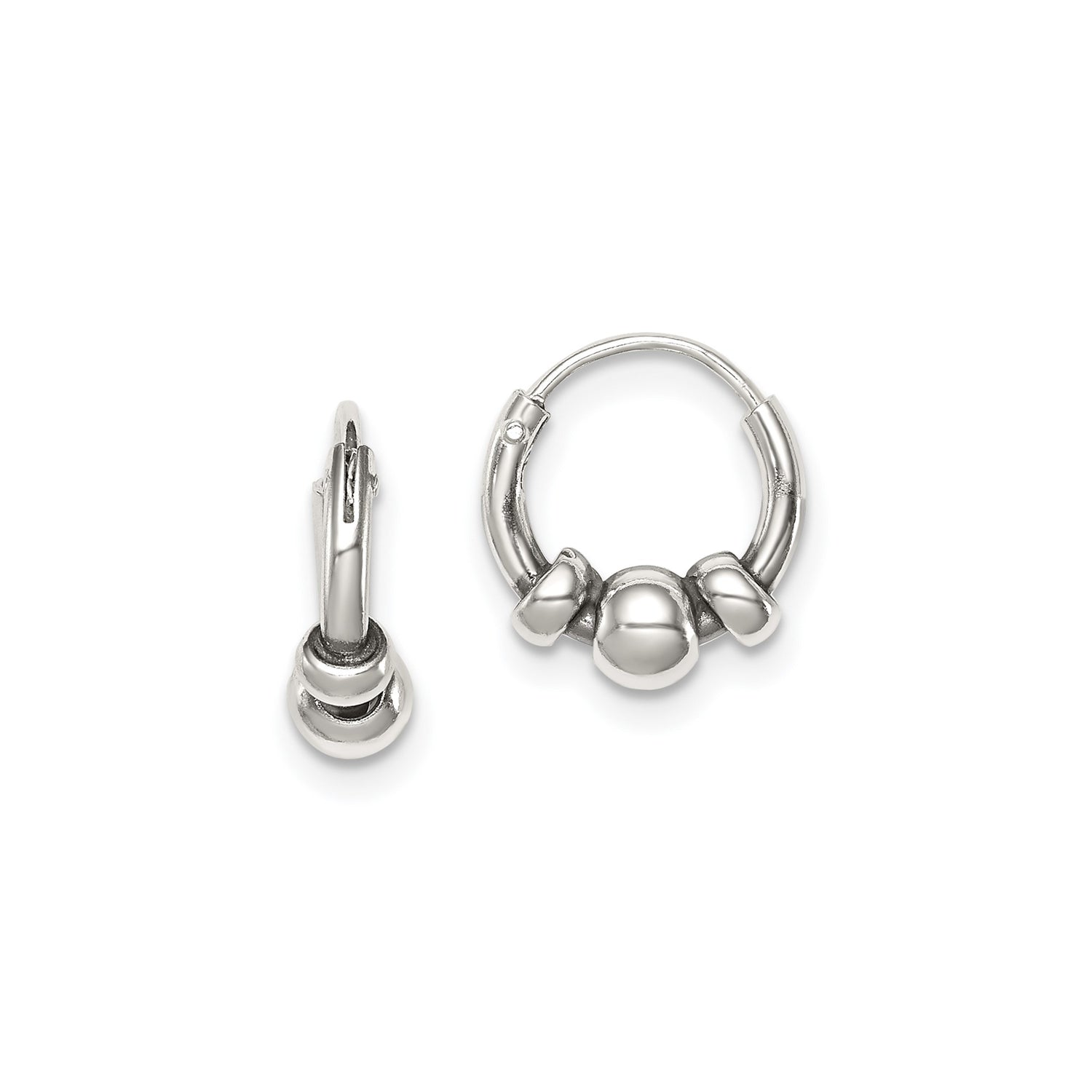 Sterling Silver Hoop Earrings with Rounded Beads, Tribal Minimalist Unisex Design