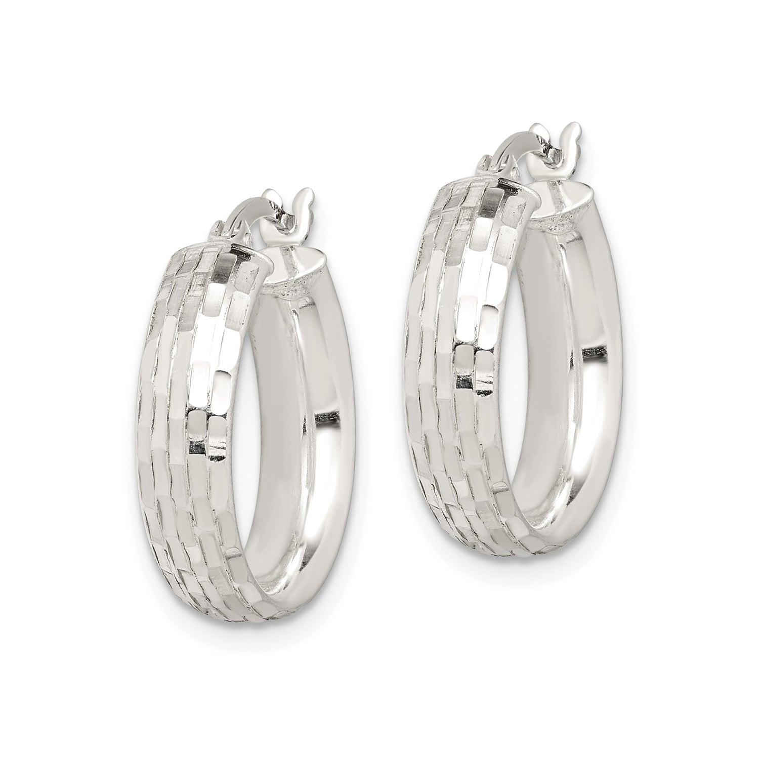 Sterling Silver Hoop Earrings with Textured Basketweave Pattern, Medium Lightweight Design