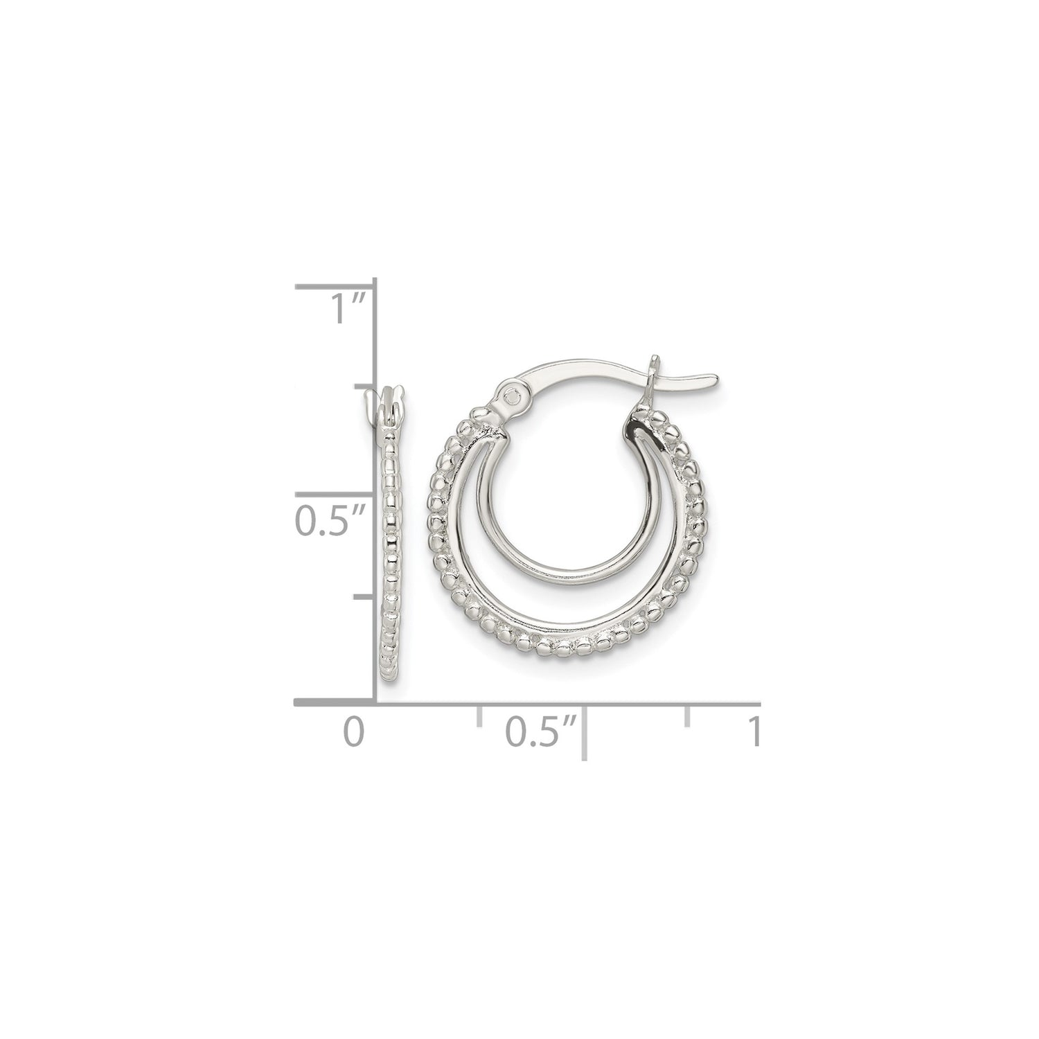 Sterling Silver Hoop Earrings with Textured Beaded Edge and Polished Finish