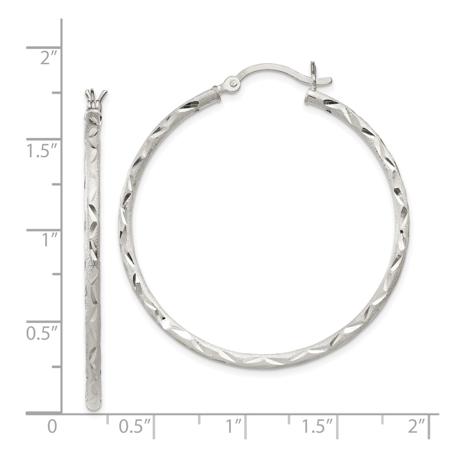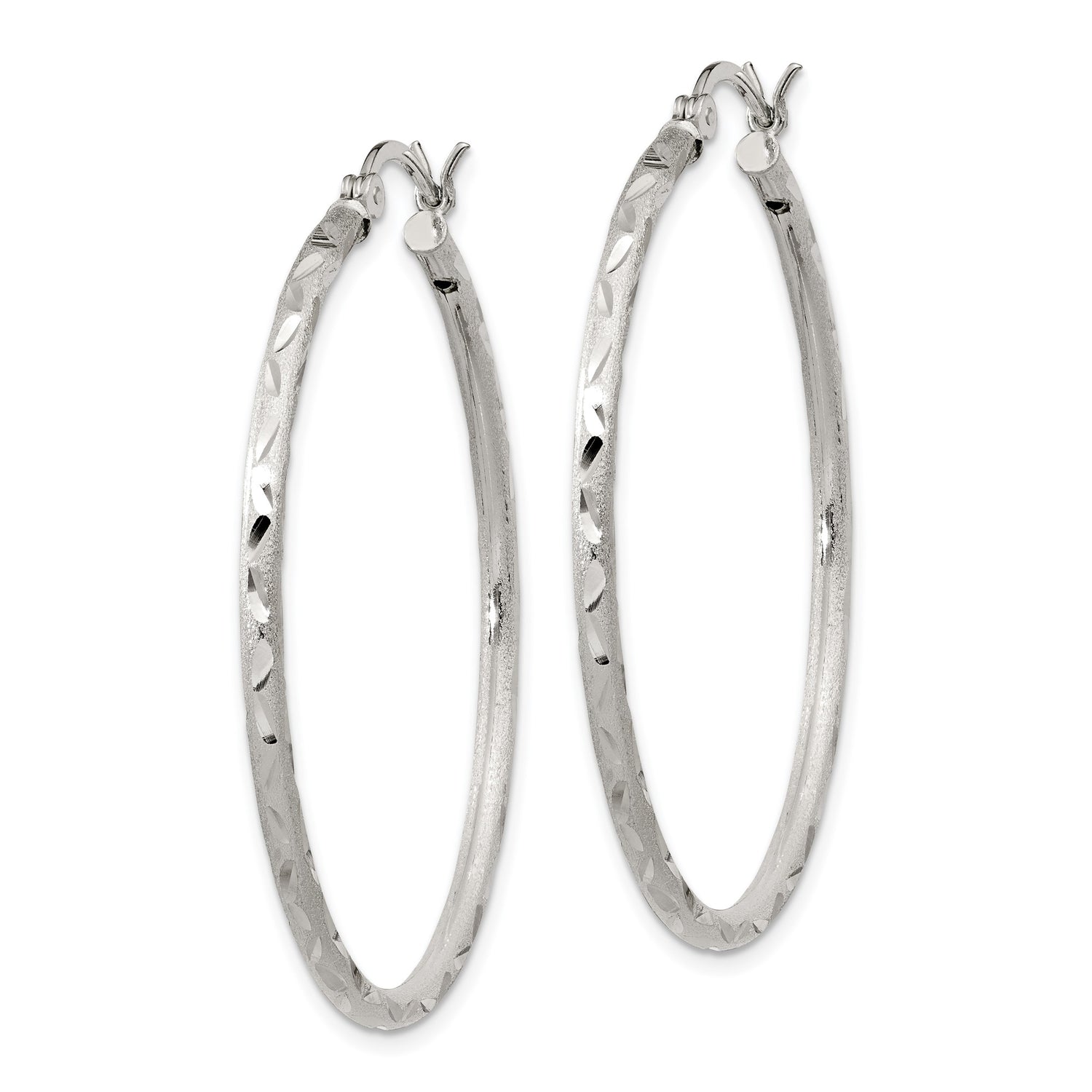 Sterling Silver Hoop Earrings with Textured Diamond Cut Design and Polished Finish