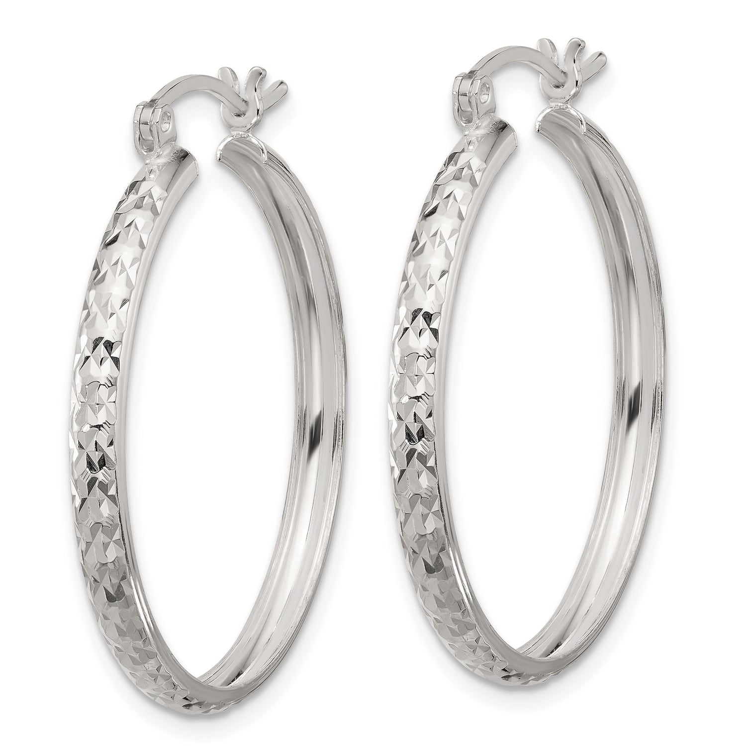 Sterling Silver Hoop Earrings with Textured Diamond Cut Finish and Latch Closure
