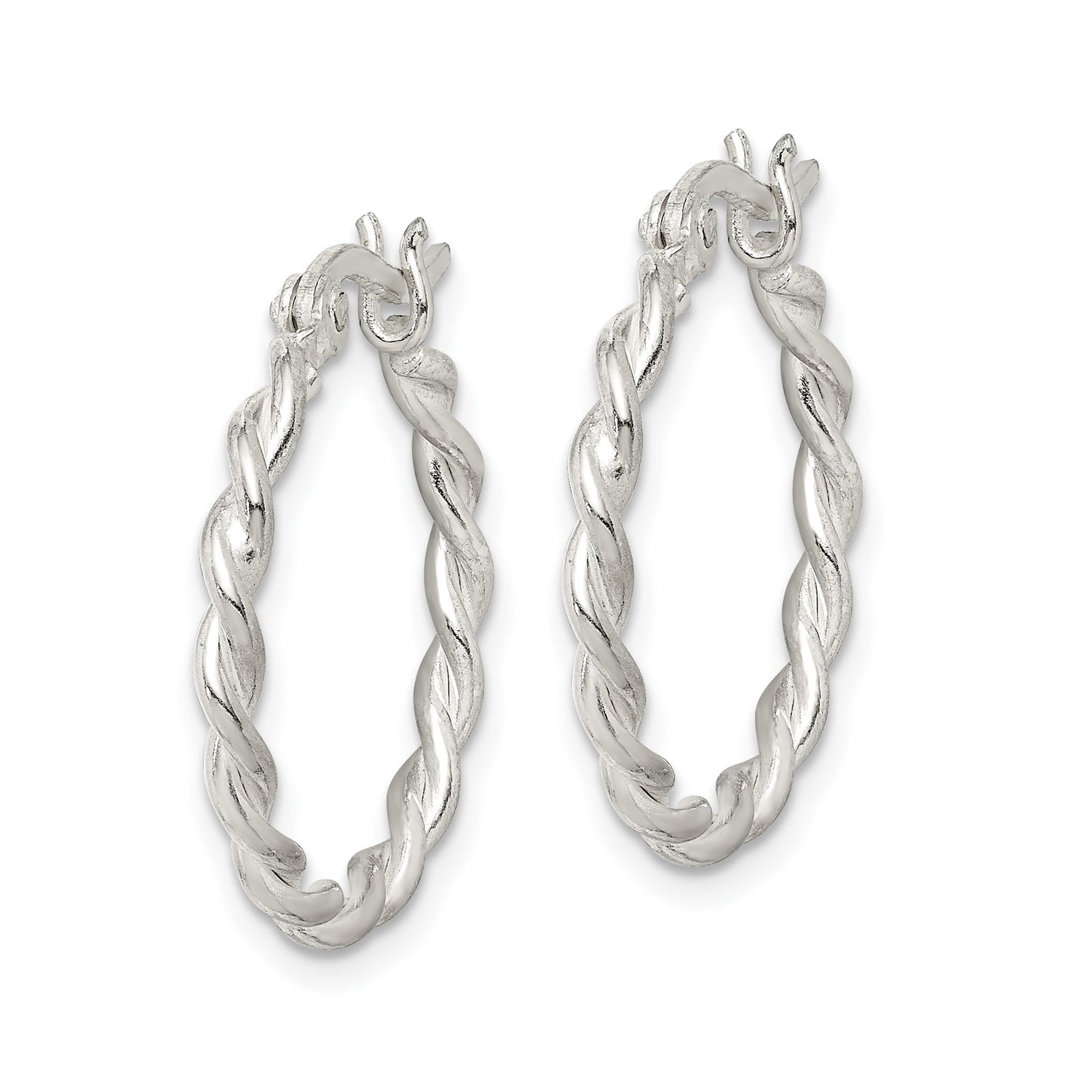 Sterling Silver Hoop Earrings with Twisted Braided Rope Design, Lightweight Polished Finish