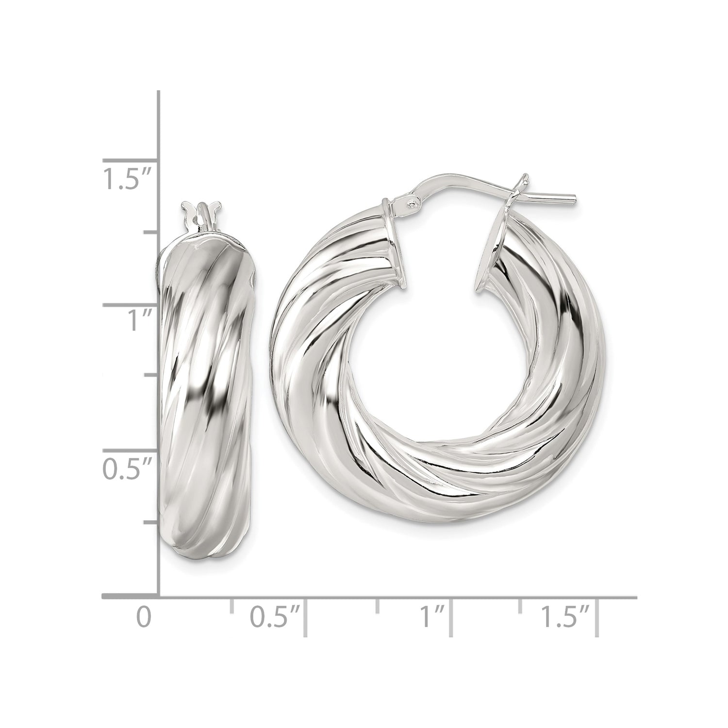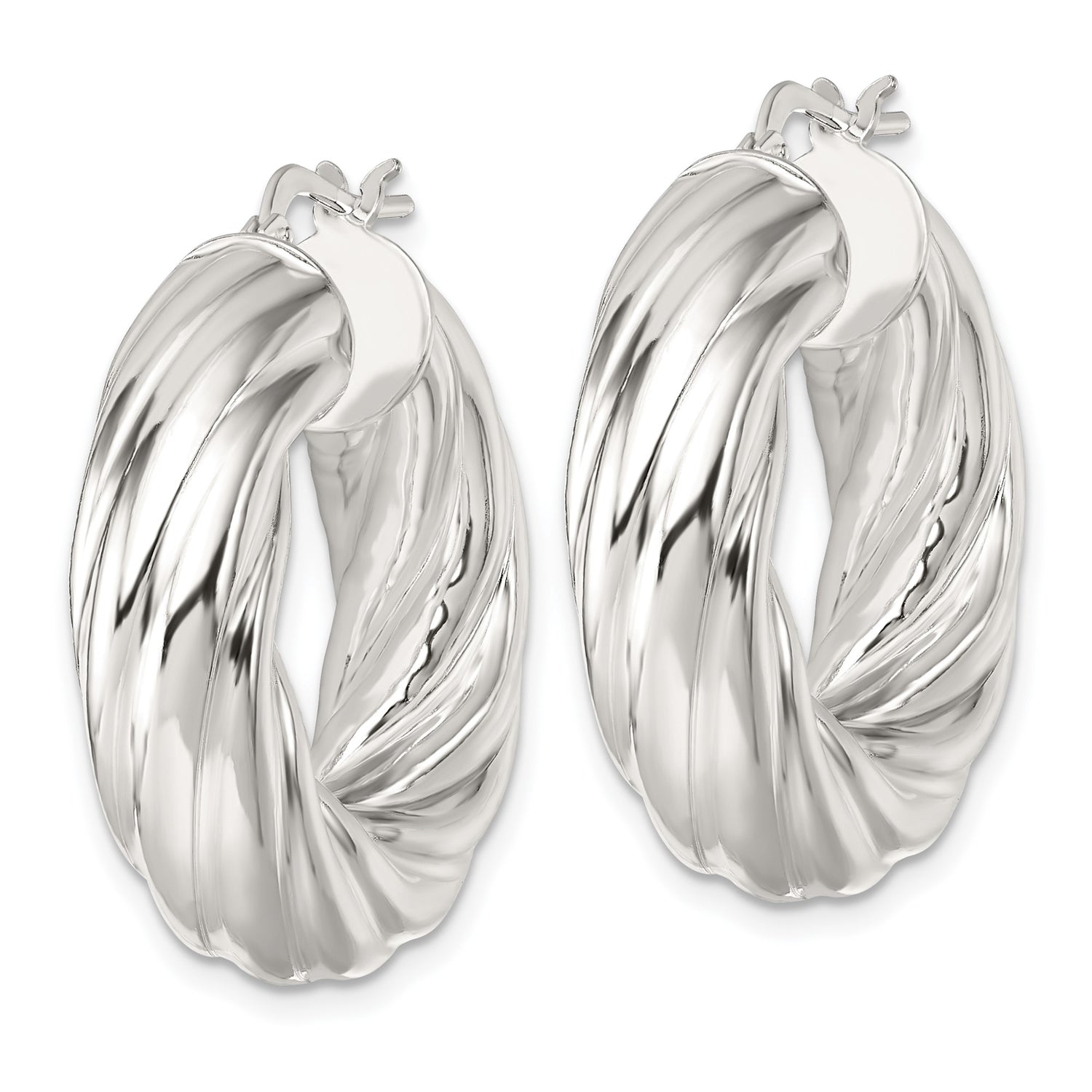 Sterling Silver Hoop Earrings with Twisted Rope Design and High Polish Finish