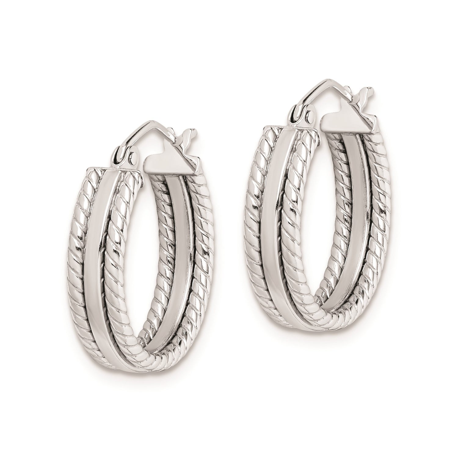 Sterling Silver Hoop Earrings with Twisted Rope Design and Polished Center Band