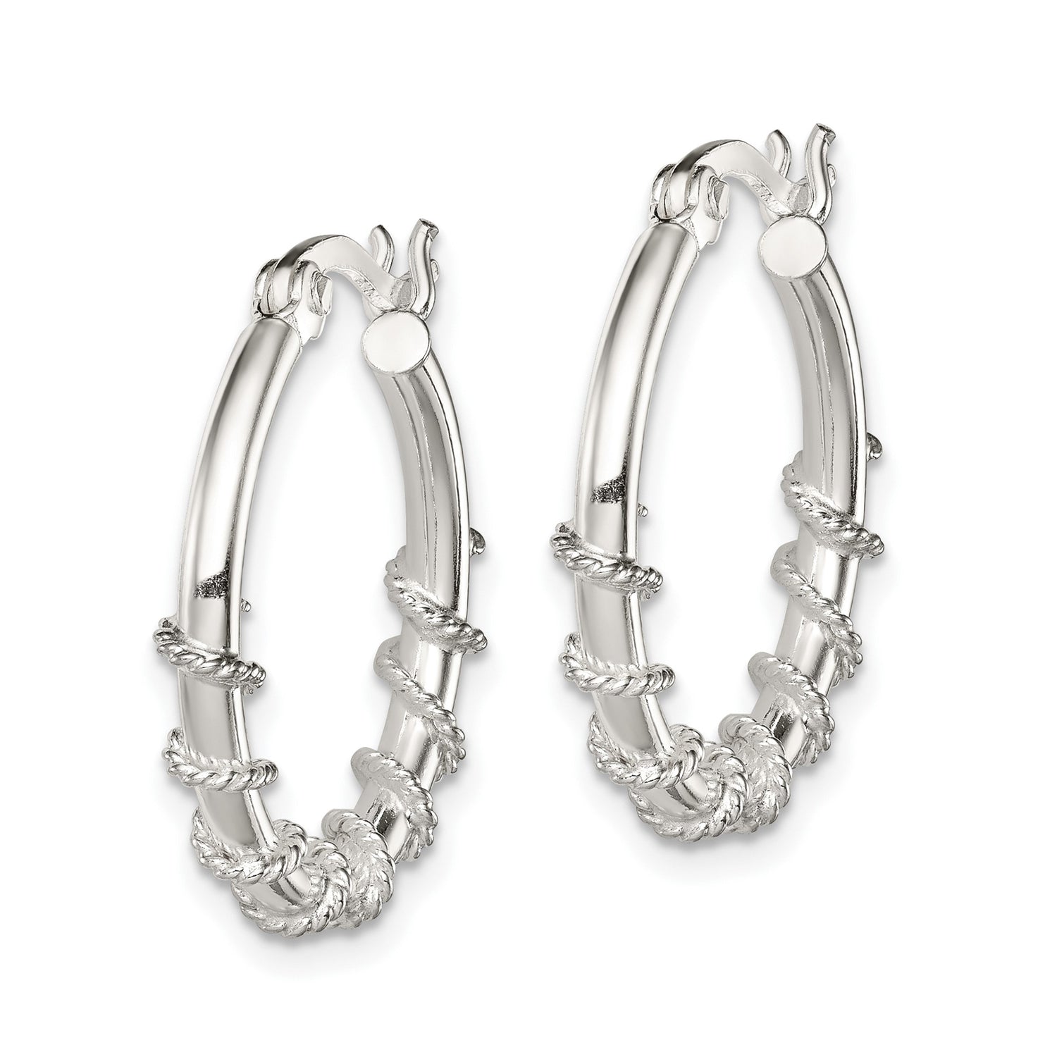 Sterling Silver Hoop Earrings with Twisted Rope Detail and Polished Finish