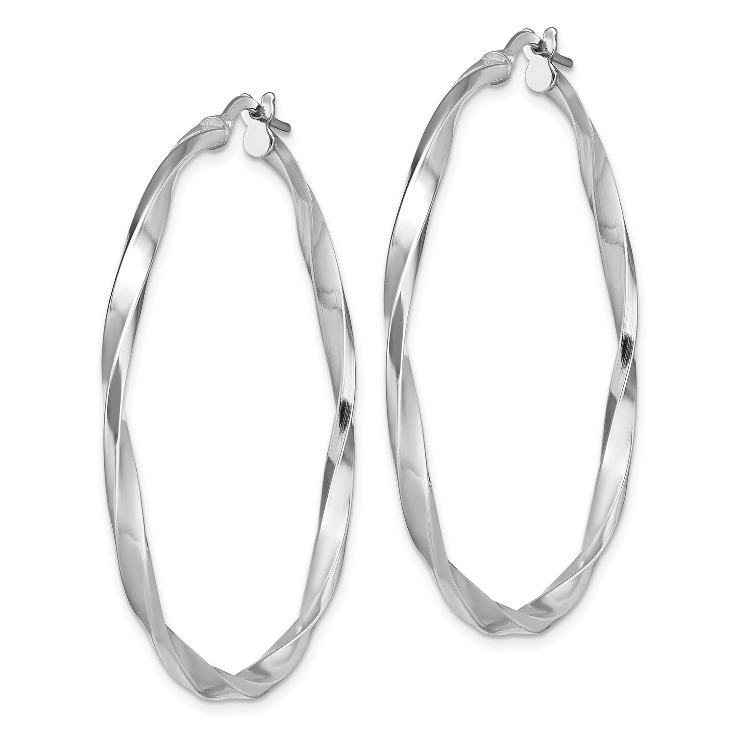 The Large Rhodium Plated Hoops Showcase A Distinct Spiral Form That Curves Gracefully, Giving The Look Of High Shine Twisted Hoops Without Added Bulk. Designed As Polished Silver Jewelry With A Fashion-Forward Sensibility, These Modern Hoops Transition Seamlessly From Morning Meetings To Elegant Evenings. The High Polish Earrings Reflect Light Beautifully, Enhancing Any Ensemble With Sleek Sparkle While Remaining Comfortable Thanks To Their Lightweight Silver Construction.