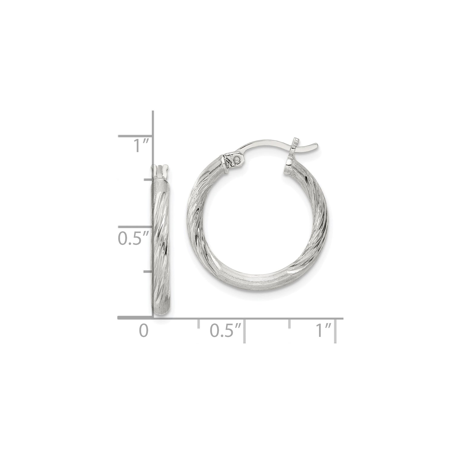 Sterling Silver Hoop Earrings with Twisted Texture and Polished Finish, Latch Back Closure