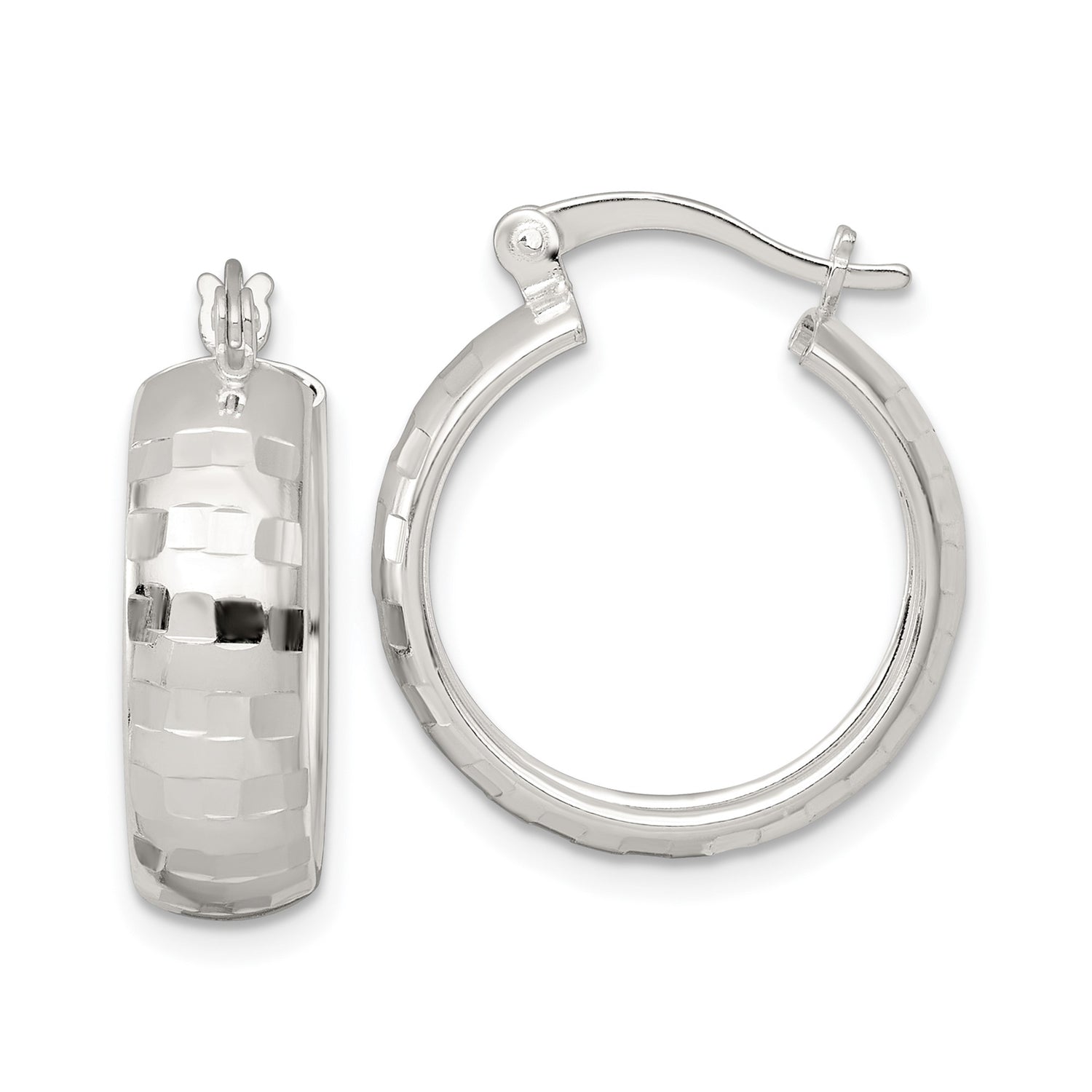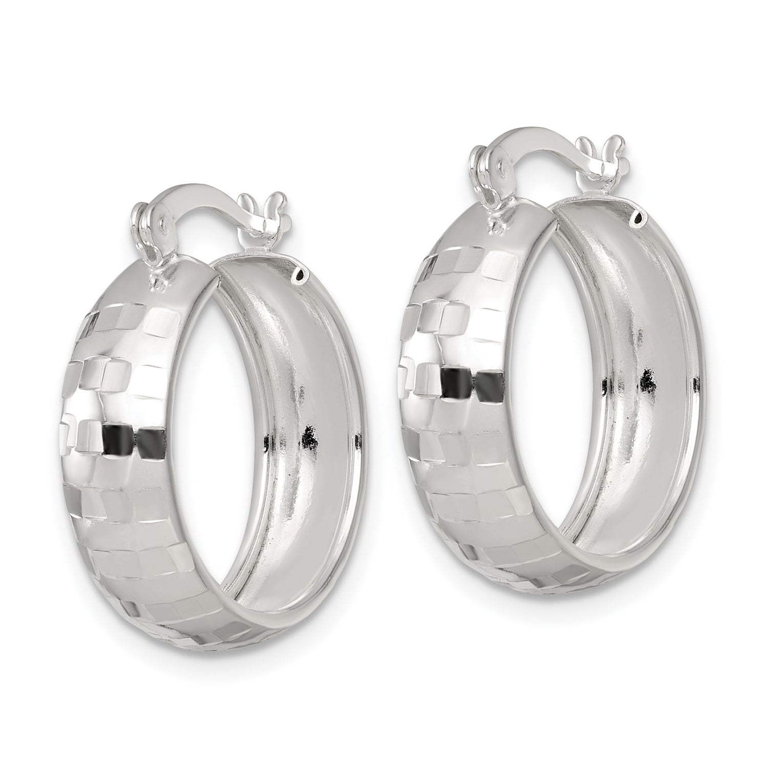Sterling Silver Hoop Earrings with Wide Hammered Texture and Polished Finish