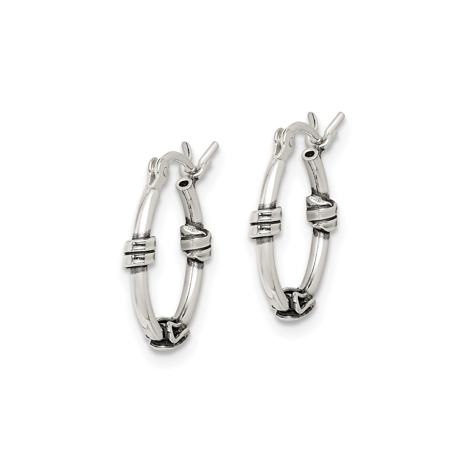 Sterling Silver Hoop Earrings with Wire Wrapped Detail, Bali Boho Tribal Style