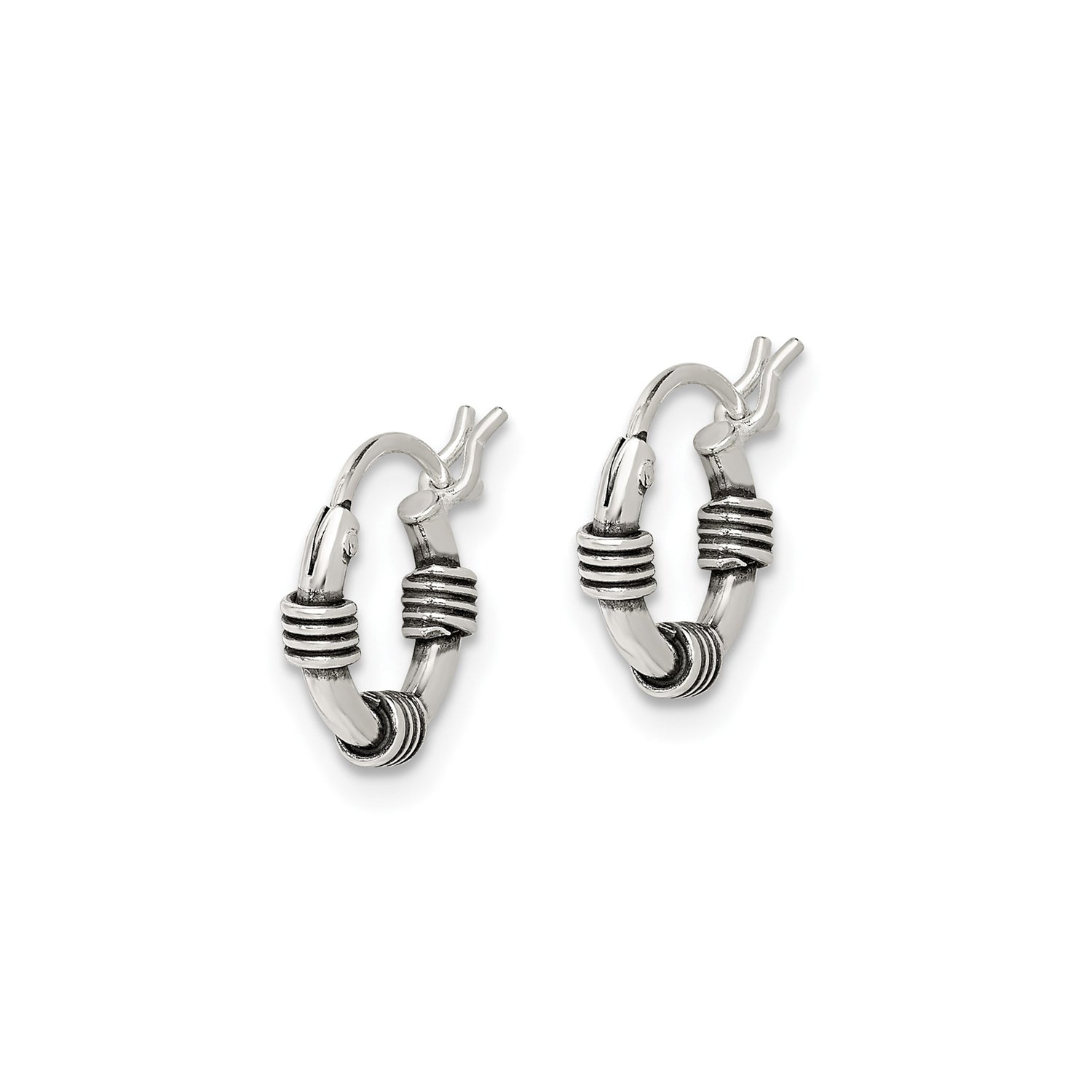 Sterling Silver Hoop Earrings with Wrapped Wire Detail, Industrial Punk Style Unisex Design