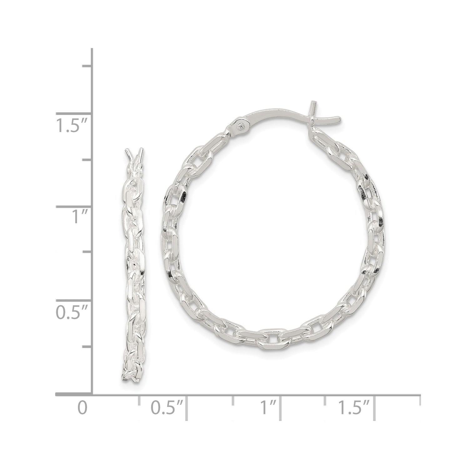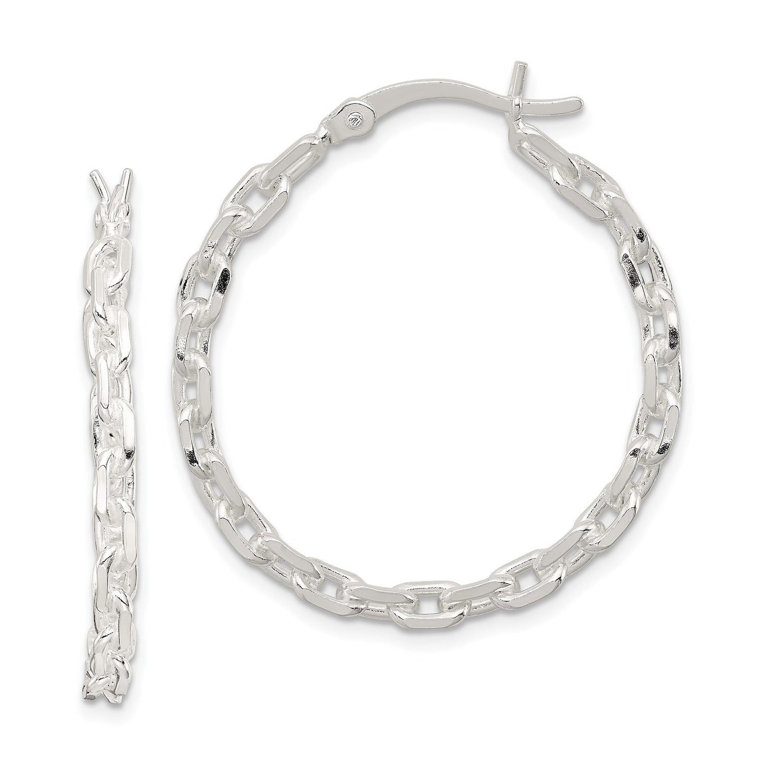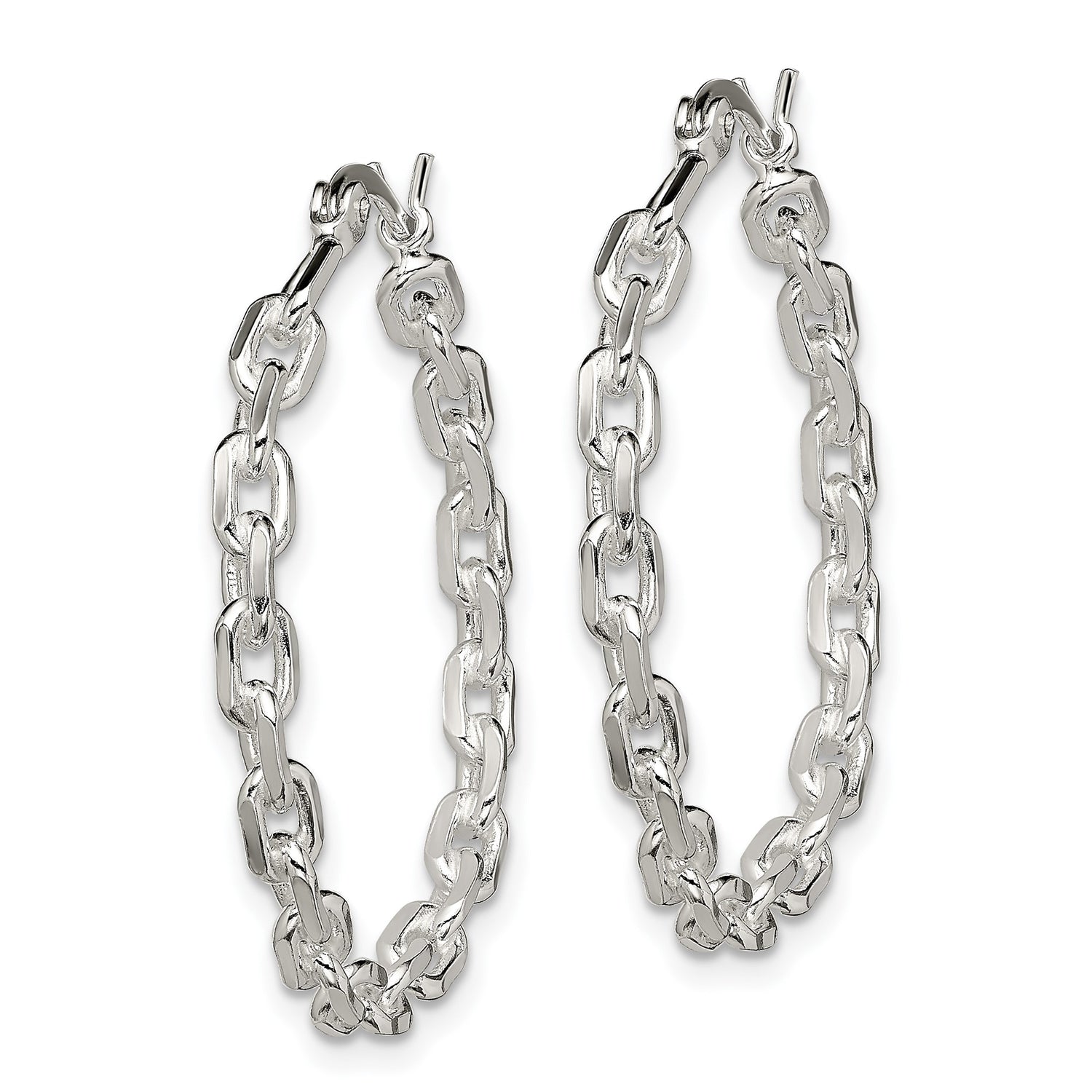 Sterling Silver Mariner Chain Hoop Earrings, Polished Link Design, Hinged Closure